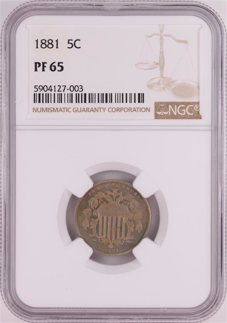One 1881 Proof Shield Nickel Coin NGC PF65. NGC Certified.