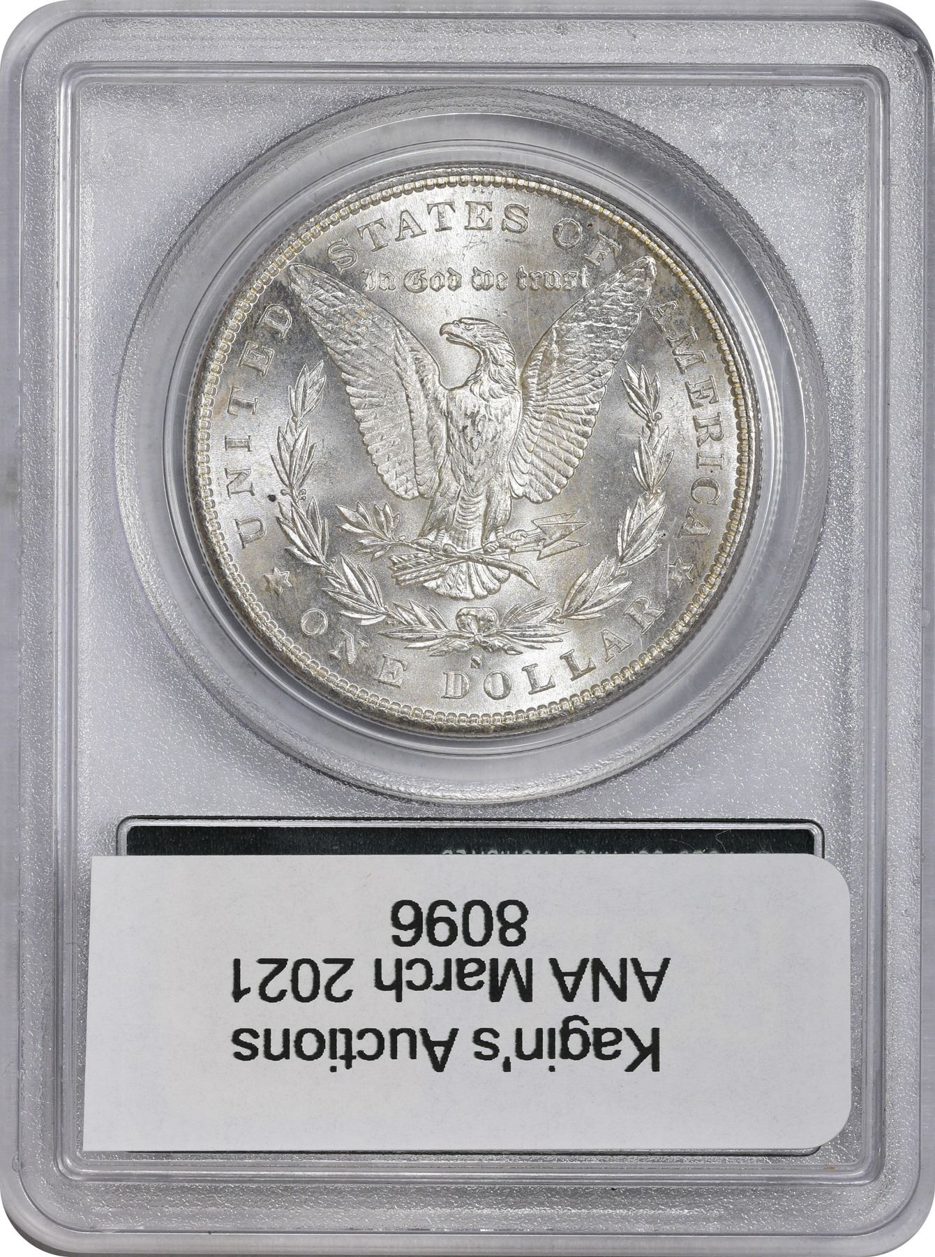 Description: This bright and satiny near-Gem offers bold cartwheels and a sharp strike. Housed in an old-style green label PCGS holder with plastic frame.