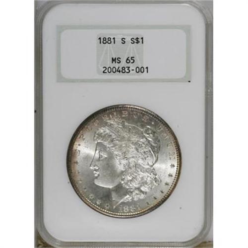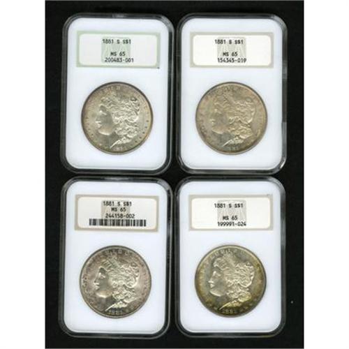 <B>(4)1881-S $1MS65 NGC.</B></I><BR><BR><B>Coin Engraver:</B> George T. Morgan<BR><BR><b>Shipping:</b> Coins & Currency (<a target="_blank" href="http://www.heritageauctions.com/common/shipping.php">view shipping information</a>)