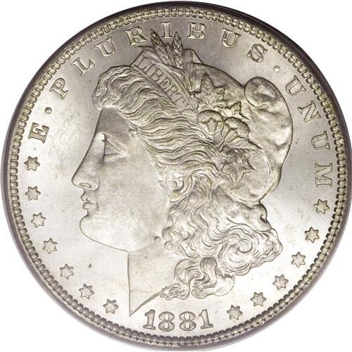 1881 S$1 MS65 PCGS. A frosty, untoned, and superbly we