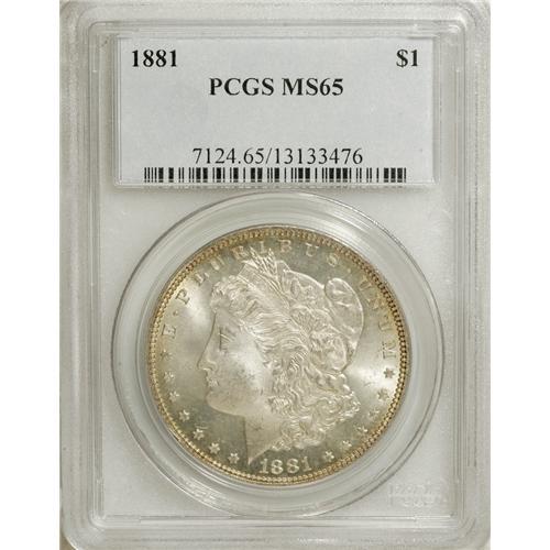 1881 S$1 MS65 PCGS. Light golden-tan color gravitates