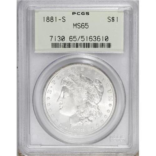 <B>1881-S $1 MS65 PCGS.</B></I> PCGS Population (41103/11632). NGC Census: (39951/14692). Mintage: 12,760,000. Numismedia Wsl. Price for NGC/PCGS coin in MS65: $118. (#7130)<BR><BR><B>Coin Engraver:</B> George T. Morgan<BR><BR><b>Shipping:</b> Coins & Currency (<a target="_blank" href="http://www.heritageauctions.com/common/shipping.php">view shipping information</a>)