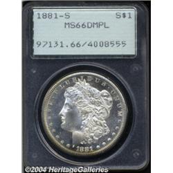 <table><tr><td><TABLE cellSpacing=0 cellPadding=0 width="100%" bgColor=#000000 border=0><TBODY> <TR><TD width="100%"><TABLE cellSpacing=1 cellPadding=3 width="100%" border=0><TBODY><TR><TD width="100%" bgColor=#79735c><FONT face=arial color=#ffffff size=3><B>Description</B> </FONT></TD></TR><TR><TD width="100%" bgColor=#ffffff><FONT face=arial size=2><B>1881-S $1 MS66 Deep Mirror Prooflike PCGS.</B></I> Sharply defined and almost completely brilliant with thick mint frost on the devices and flashy, deeply reflective mirrors in the fields. A premium coin and excellent for type. </FONT></TD></TR></TBODY></TABLE></TD></TR></TBODY></TABLE><BR><A name=PricesRealized></A><TABLE cellSpacing=0 cellPadding=0 width="100%" bgColor=#000000 border=0><TBODY><TR><TD width="100%"><TABLE cellSpacing=1 cellPadding=3 width="100%" border=0><TBODY><TR><TD width="100%" bgColor=#79735c><A name=PR><FONT face=arial color=#ffffff size=3><B>Previous Prices from Heritage Auctions</B> </FONT></A></TD></TR><TR><TD bgColor=#f6f6ed><TABLE cellSpacing=0 cellPadding=0 width="100%" border=1><TBODY><TR><TD align=middle width="33%"><B>Date</B></TD><TD align=middle width="33%"><B>Service</B></TD><TD align=middle width="33%"><B>Price</B></TD></TR><TR bgColor=whitesmoke><TD width="33%"><B>06/04/2002</B></TD><TD width="33%">ANACS</TD><TD width="33%">$471.50</TD></TR><TR bgColor=whitesmoke><TD width="33%"><B>05/05/2000</B></TD><TD width="33%">NGC</TD><TD width="33%">$747.50</TD></TR><TR bgColor=whitesmoke><TD width="33%"><B>08/14/1999</B></TD><TD width="33%">NGC</TD><TD width="33%">$747.50</TD></TR><TR bgColor=whitesmoke><TD width="33%"><B>01/11/1997</B></TD><TD width="33%">PCGS</TD><TD width="33%">$661.25</TD></TR><TR bgColor=whitesmoke><TD width="33%"><B>11/01/1999</B></TD><TD width="33%">PCGS</TD><TD width="33%">$834.00</TD></TR><TR bgColor=whitesmoke><TD width="33%"><B>03/01/1998</B></TD><TD width="33%">PCGS</TD><TD width="33%">$825.00</TD></TR></TBODY></TABLE></TD></TR><TR><TD bgColor=#ffffff><FONT face=arial size=1 ?>PLEASE NOTE: All prices realized reflect the final hammer price PLUS the buyer's premium in auctions that charge a buyer's premium. Each item has a notation at the top of the listing indicating whether that lot included a buyer's premium. Example: A item that sells with a final hammer price of $100 and a 20% buyer's premium will display with a price realized of $120. All information listed is intended to be as accurate as possible, but errors are possible. Please use this guide carefully and inform us of any inaccuracies. </FONT></TD></TR></TBODY></TABLE></TD></TR></TBODY></TABLE><BR><TABLE cellSpacing=0 cellPadding=0 width="100%" bgColor=#000000 border=0><TBODY><TR><TD width="100%"><TABLE cellSpacing=1 cellPadding=3 width="100%" border=0><TBODY><TR><TD width="100%" bgColor=#79735c colSpan=6><FONT face=arial color=#ffffff size=3><B>Price Guide*</B> </FONT></TD></TR><TR bgColor=#f6f6ed><TD align=middle><B>Grade</B> </TD><TD align=middle><B>Coin World<BR>(Trends)</B> </TD><TD align=middle><B>Numismedia<BR>Retail</B> </TD><TD align=middle><B>Numismedia<BR>Wholesale</B> </TD><TD align=middle><B>Coin<BR>Universe</B> </TD><TD align=middle><B>Heritage<BR>Value Index</B> </TD></TR><TR bgColor=#ffffff><TD align=middle>65</TD><TD align=right>$450.00</TD><TD align=right>$450.00</TD><TD align=right>$360.00</TD><TD align=right>$550.00</TD><TD align=right>$378.75</TD></TR><TR style="FONT-WEIGHT: bold" bgColor=#cccfdd><TD align=middle>66</TD><TD align=right>---</TD><TD align=right>---</TD><TD align=right>$850.00</TD><TD align=right>$1,350.00</TD><TD align=right>$950.00</TD></TR><TR bgColor=#ffffff><TD align=middle>67</TD><TD align=right>---</TD><TD align=right>---</TD><TD align=right>$3,350.00</TD><TD align=right>$4,800.00</TD><TD align=right>$3,360.00</TD></TR><TR bgColor=#ffffff><TD colSpan=6><FONT size=1>*All information listed is intended to be as accurate as possible, but errors are possible. No item may be returned or refused based on this information which is provided as a service to our customers. You should contact each pricing source directly to determine the accuracy of this information. </FONT></TD></TR></TBODY></TABLE></TD></TR></TBODY></TABLE><BR><TABLE cellSpacing=0 cellPadding=0 width="100%" bgColor=#000000 border=0><TBODY><TR><TD width="100%"><TABLE cellSpacing=1 cellPadding=3 width="100%" border=0><TBODY><TR><TD width="100%" bgColor=#79735c><FONT face=arial color=#ffffff size=3><B>Population Guide</B> </FONT></TD></TR><TR bgColor=#ffffff><TD align=middle><!-- Begin Output of Population Grid--><TABLE cellSpacing=0 cellPadding=0 width="100%" border=0><TBODY><TR><TD vAlign=center><TABLE cellSpacing=0 width="100%" border=1 cellsadding="3"><TBODY><TR><TD vAlign=center><TABLE cellSpacing=0 cellPadding=3 width="100%" border=1><TBODY><TR><TD vAlign=center align=middle bgColor=#f0f1e8 colSpan=2 <CENTER><FONT face=Arial size=2><B>PCGS Pop </B></FONT><CENTER></CENTER></TD><TD vAlign=center align=middle bgColor=#f0f1e8 colSpan=2><CENTER><FONT face=Arial size=2><B>NGC Pop</B></CENTER></FONT></TD></TR><TR><TD vAlign=center><FONT face=Arial size=2>(66)</FONT> </TD><TD vAlign=center align=right><FONT face=Arial size=2>55</FONT> </TD><TD vAlign=center><FONT face=Arial size=2>(66)</FONT> </TD><TD vAlign=center align=right><FONT face=Arial size=2>0</FONT> </TD></TR><TR><TD vAlign=center><FONT face=Arial size=2>(>66)</FONT> </TD><TD vAlign=center align=right><FONT face=Arial size=2>7</FONT> </TD><TD vAlign=center><FONT face=Arial size=2>(>66)</FONT> </TD><TD vAlign=center align=right><FONT face=Arial size=2>0</FONT> </TD></TR></TBODY></TABLE></TD></TR></TBODY></TABLE></TD></TR></TBODY></TABLE><!-- End Output of Population Grid--></TD></TR></TBODY></TABLE></TD></TR></TBODY></TABLE><BR><TABLE cellSpacing=0 cellPadding=0 width="100%" bgColor=#000000 border=0><TBODY><TR> <font color='#000000'><span style='background-color: #FFFFFF'><td bgcolor='#FFFFFE'> Important notice: Heritage usually auctions material at the rate of 200-250 l