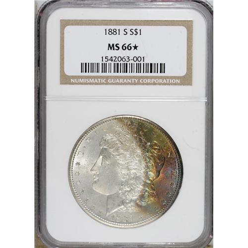 1881-S $1 MS66 NGC. NGC Census: (11257/2535). PCGS Pop