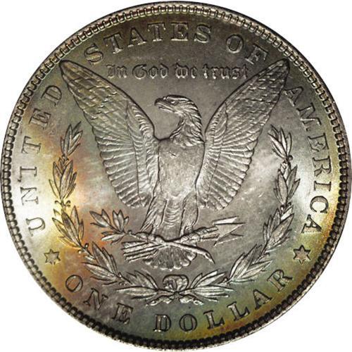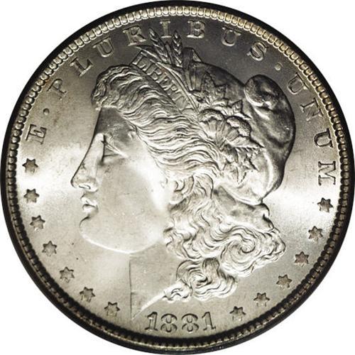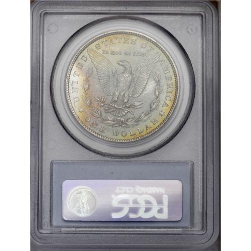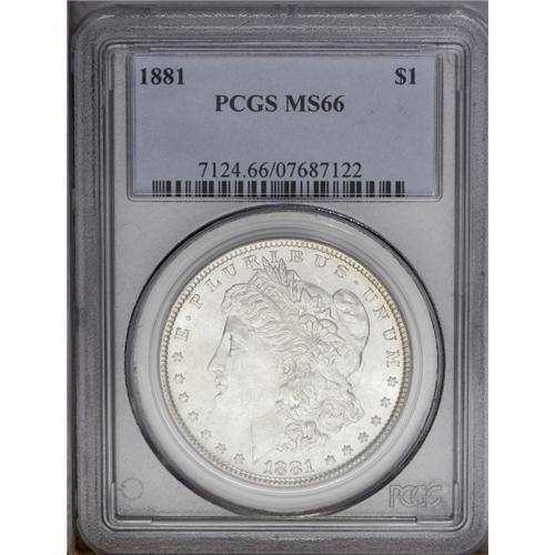 <B>1881<img border='0' src='http://www.heritagecoins.com/images/star.gif' width=10 height=10>$1> MS66 PCGS.</B></I> A brilliant and attractive Gem with fully white obverse luster and attractive rainbow toning on the reverse. This example is sharply struck with all design features well defined. It is the finest generally available quality, with only two better examples certified by PCGS. An important opportunity for the advanced collector who appreciates such numismatic delicacies. Population: 51 in 66, 2 finer (3/06). <BR><BR><B>Important notice:</B> Heritage usually auctions material at the rate of 200-250 lots per hour. On some occasions eBay Live bid software or the Internet may not be able to keep up with the pace of the auction. We recommend placing a realistic absentee bid now as insurance to avoid disappointment. Occasionally the auctioneer may eliminate or reject an eBay Live bid, and the auctioneer may also reopen a lot after the close of the eBay live bidding (usually because we missed an audience bid), and may reject your bid even if it shows you as the winning bidder. By bidding via eBay Live, you agree that Heritage may award the lot to another bidder at its sole discretion under the circumstances described above or any other reasonable circumstances. Since eBay bids are not shown to us until we open the lot on the floor, we treat those bids just like floor bids. In most cases the floor responds before the eBay bid is presented to us, due to Internet lag time, so for consistency we have made it a policy that floor bids are always considered first over tie eBay live bids. Also please note that all Heritage lots purchased through eBay Live carry a 20% Buyer's Premium. Please make sure you read the Terms and Conditions before you bid. This lot is being auctioned in conjunction with a live floor auction by Heritage Galleries & Auctioneers. All final auction and invoice information will be supplied by Heritage Galleries & Auctioneers, and all other information should be considered preliminary. Lot:3307 <BR><BR><B>Winning Notification and Billing:</B> After the FINAL session in this auction is complete, Heritage will send e-mail and snail mail invoices. This process normally takes several days. All final auction and invoice information will be supplied by Heritage Galleries & Auctioneers, and all other information should be considered preliminary. <BR><BR>This auction will be conducted on a live auction floor and over the Internet through eBay Live. If you choose to place an absentee bid, please take a moment to <font color='#0000ff'><u><a href='http://pages.ebay.com/liveauctions/help/before/laabsentee.html'>learn how eBay Live absentee bidding works</a></u></font><font color='#000000'>