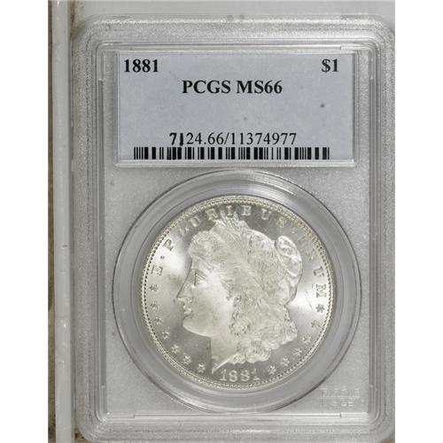 1881 S$1 MS66 PCGS. Nearly brilliant with flashy, coru