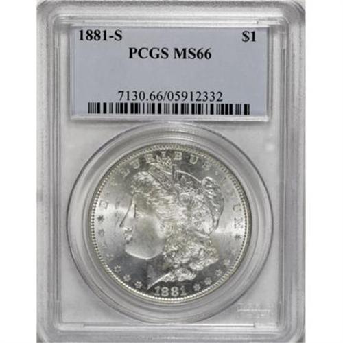 <B>1881-S $1 MS66 PCGS.</B></I> This Premium Gem displays dazzling luster, and the toned reverse takes on an array of variegated lime-green, crimson, yellow-gold, violet, and forest-green coloration, leaving the obverse brilliant. A solid strike leaves sharp definition on the design elements, including the hair at Liberty's ear and the eagle's breast feathers. Well preserved throughout.<BR><BR><B>Coin Engraver:</B> George T. Morgan<BR><BR><b>Shipping:</b> Coins & Currency (<a target="_blank" href="http://www.heritageauctions.com/common/shipping.php">view shipping information</a>)