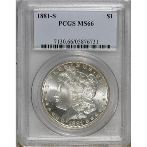 <B>1881-S $1 MS66 PCGS.</B></I> PCGS Population (10334/1390). NGC Census: (12020/2868). Mintage: 12,760,000. Numismedia Wsl. Price for NGC/PCGS coin in MS66: $240. (#7130)<BR><BR><B>Coin Engraver:</B> George T. Morgan<BR><BR><b>Shipping:</b> Coins & Currency (<a target="_blank" href="http://www.heritageauctions.com/common/shipping.php">view shipping information</a>)
