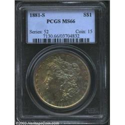 <TABLE cellSpacing=0 cellPadding=0 width="100%" bgColor=#000000 border=0><TBODY><TR><TD width="100%"><TABLE cellSpacing=1 cellPadding=3 width="100%" border=0><TBODY><TR><TD width="100%" bgColor=#79735c><FONT face=arial color=#ffffff size=3><B>Description</B> </FONT></TD></TR><TR><TD width="100%" bgColor=#ffffff><FONT face=arial size=2><B>1881-S $1 MS66 PCGS.</B></I> Lightly but attractively toned on the obverse, with lovely variegated rainbow shades. Although a common date, a premium Gem that is this attractive is still scarce and in great demand. </FONT></TD></TR></TBODY></TABLE></TD></TR></TBODY></TABLE><BR><A name=PricesRealized></A><TABLE cellSpacing=0 cellPadding=0 width="100%" bgColor=#000000 border=0><TBODY><TR><TD width="100%"><TABLE cellSpacing=1 cellPadding=3 width="100%" border=0><TBODY><TR><TD width="100%" bgColor=#79735c><A name=PR><FONT face=arial color=#ffffff size=3><B>Previous Prices from Heritage Auctions</B> </FONT></A></TD></TR><TR><TD bgColor=#f6f6ed><TABLE cellSpacing=0 cellPadding=0 width="100%" border=1><TBODY><TR><TD align=middle width="33%"><B>Date</B></TD><TD align=middle width="33%"><B>Service</B></TD><TD align=middle width="33%"><B>Price</B></TD></TR><TR bgColor=whitesmoke><TD width="33%"><B>02/11/2003</B></TD><TD width="33%">NGC</TD><TD width="33%">$161.00</TD></TR><TR bgColor=whitesmoke><TD width="33%"><B>02/11/2003</B></TD><TD width="33%">NGC</TD><TD width="33%">$161.00</TD></TR><TR bgColor=whitesmoke><TD width="33%"><B>02/11/2003</B></TD><TD width="33%">NGC</TD><TD width="33%">$161.00</TD></TR><TR bgColor=whitesmoke><TD width="33%"><B>05/03/2003</B></TD><TD width="33%">NGC</TD><TD width="33%">$253.00</TD></TR><TR bgColor=whitesmoke><TD width="33%"><B>05/03/2003</B></TD><TD width="33%">NGC</TD><TD width="33%">$253.00</TD></TR><TR bgColor=whitesmoke><TD width="33%"><B>05/03/2003</B></TD><TD width="33%">NGC</TD><TD width="33%">$253.00</TD></TR><TR bgColor=whitesmoke><TD width="33%"><B>05/03/2003</B></TD><TD width="33%">NGC</TD><TD width="33%">$322.00</TD></TR><TR bgColor=whitesmoke><TD width="33%"><B>05/03/2003</B></TD><TD width="33%">NGC</TD><TD width="33%">$322.00</TD></TR><TR bgColor=whitesmoke><TD width="33%"><B>05/03/2003</B></TD><TD width="33%">NGC</TD><TD width="33%">$322.00</TD></TR><TR bgColor=whitesmoke><TD width="33%"><B>07/22/2003</B></TD><TD width="33%">NGC</TD><TD width="33%">$184.00</TD></TR><TR bgColor=whitesmoke><TD width="33%"><B>07/22/2003</B></TD><TD width="33%">NGC</TD><TD width="33%">$184.00</TD></TR><TR bgColor=whitesmoke><TD width="33%"><B>07/22/2003</B></TD><TD width="33%">NGC</TD><TD width="33%">$184.00</TD></TR><TR bgColor=whitesmoke><TD width="33%"><B>06/17/2003</B></TD><TD width="33%">NGC</TD><TD width="33%">$207.00</TD></TR><TR bgColor=whitesmoke><TD width="33%"><B>06/17/2003</B></TD><TD width="33%">NGC</TD><TD width="33%">$207.00</TD></TR><TR bgColor=whitesmoke><TD width="33%"><B>06/17/2003</B></TD><TD width="33%">NGC</TD><TD width="33%">$207.00</TD></TR><TR bgColor=whitesmoke><TD width="33%"><B>01/13/2003</B></TD><TD width="33%">ANACS</TD><TD width="33%">$110.40</TD></TR><TR bgColor=whitesmoke><TD width="33%"><B>01/13/2003</B></TD><TD width="33%">ANACS</TD><TD width="33%">$110.40</TD></TR><TR bgColor=whitesmoke><TD width="33%"><B>01/13/2003</B></TD><TD width="33%">ANACS</TD><TD width="33%">$110.40</TD></TR><TR bgColor=whitesmoke><TD width="33%"><B>09/30/2002</B></TD><TD width="33%">ANACS</TD><TD width="33%">$161.00</TD></TR><TR bgColor=whitesmoke><TD width="33%"><B>09/30/2002</B></TD><TD width="33%">ANACS</TD><TD width="33%">$161.00</TD></TR><TR bgColor=whitesmoke><TD width="33%"><B>09/30/2002</B></TD><TD width="33%">ANACS</TD><TD width="33%">$161.00</TD></TR><TR bgColor=whitesmoke><TD width="33%"><B>08/13/2002</B></TD><TD width="33%">ANACS</TD><TD width="33%">$178.25</TD></TR><TR bgColor=whitesmoke><TD width="33%"><B>08/13/2002</B></TD><TD width="33%">ANACS</TD><TD width="33%">$178.25</TD></TR><TR bgColor=whitesmoke><TD width="33%"><B>08/13/2002</B></TD><TD width="33%">ANACS</TD><TD width="33%">$178.25</TD></TR><TR bgColor=whitesmoke><TD width="33%"><B>06/10/2002</B></TD><TD width="33%">ANACS</TD><TD width="33%">$212.75</TD></TR><TR bgColor=whitesmoke><TD width="33%"><B>06/10/2002</B></TD><TD width="33%">ANACS</TD><TD width="33%">$212.75</TD></TR><TR bgColor=whitesmoke><TD width="33%"><B>06/10/2002</B></TD><TD width="33%">ANACS</TD><TD width="33%">$212.75</TD></TR><TR bgColor=whitesmoke><TD width="33%"><B>05/14/2002</B></TD><TD width="33%">ANACS</TD><TD width="33%">$235.75</TD></TR><TR bgColor=whitesmoke><TD width="33%"><B>05/14/2002</B></TD><TD width="33%">ANACS</TD><TD width="33%">$235.75</TD></TR><TR bgColor=whitesmoke><TD width="33%"><B>05/14/2002</B></TD><TD width="33%">ANACS</TD><TD width="33%">$235.75</TD></TR><TR bgColor=whitesmoke><TD width="33%"><B>06/06/1997</B></TD><TD width="33%">ANACS</TD><TD width="33%">$172.50</TD></TR><TR bgColor=whitesmoke><TD width="33%"><B>06/06/1997</B></TD><TD width="33%">ANACS</TD><TD width="33%">$172.50</TD></TR><TR bgColor=whitesmoke><TD width="33%"><B>06/06/1997</B></TD><TD width="33%">ANACS</TD><TD width="33%">$172.50</TD></TR><TR bgColor=whitesmoke><TD width="33%"><B>06/02/2001</B></TD><TD width="33%">ANACS</TD><TD width="33%">$120.75</TD></TR><TR bgColor=whitesmoke><TD width="33%"><B>06/02/2001</B></TD><TD width="33%">ANACS</TD><TD width="33%">$120.75</TD></TR><TR bgColor=whitesmoke><TD width="33%"><B>06/02/2001</B></TD><TD width="33%">ANACS</TD><TD width="33%">$120.75</TD></TR><TR bgColor=whitesmoke><TD width="33%"><B>11/02/1999</B></TD><TD width="33%">ANACS</TD><TD width="33%">$140.00</TD></TR><TR bgColor=whitesmoke><TD width="33%"><B>11/02/1999</B></TD><TD width="33%">ANACS</TD><TD width="33%">$140.00</TD></TR><TR bgColor=whitesmoke><TD width="33%"><B>11/02/1999</B></TD><TD width="33%">ANACS</TD><TD width="33%">$140.00</TD></TR><TR bgColor=whitesmoke><TD width="33%"><B>12/12/2000</B></TD><TD width="33%">ANACS</TD><TD width="33%">$155.00</TD></TR><TR bgColor=whitesmoke><TD width