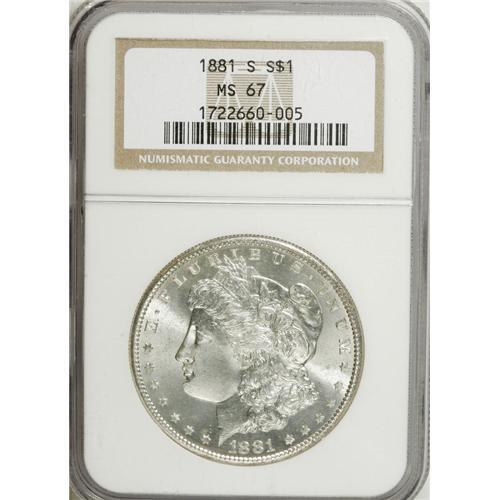 1881-S $1 MS67 NGC. NGC Census: (2470/125). PCGS P