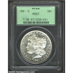 1881-S $1 MS67 PCGS. Well struck with exquisite preservation, the near-brilliant fields are semi-...