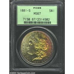 <TABLE cellSpacing=0 cellPadding=0 width="100%" bgColor=#000000 border=0><TBODY><TR><TD width="100%"><TABLE cellSpacing=1 cellPadding=3 width="100%" border=0><TBODY><TR><TD width="100%" bgColor=#79735c><FONT face=arial color=#ffffff size=3><B>Description</B> </FONT></TD></TR><TR><TD width="100%" bgColor=#ffffff><FONT face=arial size=2><B>1881-S $1 MS67 PCGS.</B></I> Spectacular in every facet with effulgent luster, mark-free surfaces, and a needle sharp strike. Not to mention these attributes, this piece has bright and attractive yellow, blue, and fuchsin patina that caresses the obverse surfaces. Seemingly the ultimate example for one interested in high grade toned Morgans. </FONT></TD></TR></TBODY></TABLE></TD></TR></TBODY></TABLE><BR><A name=PricesRealized></A><TABLE cellSpacing=0 cellPadding=0 width="100%" bgColor=#000000 border=0><TBODY><TR><TD width="100%"><TABLE cellSpacing=1 cellPadding=3 width="100%" border=0><TBODY><TR><TD width="100%" bgColor=#79735c><A name=PR><FONT face=arial color=#ffffff size=3><B>Previous Prices from Heritage Auctions</B> </FONT></A></TD></TR><TR><TD bgColor=#f6f6ed><TABLE cellSpacing=0 cellPadding=0 width="100%" border=1><TBODY><TR><TD align=middle width="33%"><B>Date</B></TD><TD align=middle width="33%"><B>Service</B></TD><TD align=middle width="33%"><B>Price</B></TD></TR><TR bgColor=whitesmoke><TD width="33%"><B>06/07/1997</B></TD><TD width="33%">NGC</TD><TD width="33%">$577.50</TD></TR><TR bgColor=whitesmoke><TD width="33%"><B>06/07/1997</B></TD><TD width="33%">NGC</TD><TD width="33%">$577.50</TD></TR><TR bgColor=whitesmoke><TD width="33%"><B>01/13/2002</B></TD><TD width="33%">NGC</TD><TD width="33%">$415.15</TD></TR><TR bgColor=whitesmoke><TD width="33%"><B>01/13/2002</B></TD><TD width="33%">NGC</TD><TD width="33%">$415.15</TD></TR><TR bgColor=whitesmoke><TD width="33%"><B>12/04/2001</B></TD><TD width="33%">NGC</TD><TD width="33%">$450.00</TD></TR><TR bgColor=whitesmoke><TD width="33%"><B>12/04/2001</B></TD><TD width="33%">NGC</TD><TD width="33%">$450.00</TD></TR><TR bgColor=whitesmoke><TD width="33%"><B>08/07/2000</B></TD><TD width="33%">NGC</TD><TD width="33%">$448.50</TD></TR><TR bgColor=whitesmoke><TD width="33%"><B>08/07/2000</B></TD><TD width="33%">NGC</TD><TD width="33%">$448.50</TD></TR><TR bgColor=whitesmoke><TD width="33%"><B>06/06/1997</B></TD><TD width="33%">NGC</TD><TD width="33%">$488.75</TD></TR><TR bgColor=whitesmoke><TD width="33%"><B>06/06/1997</B></TD><TD width="33%">NGC</TD><TD width="33%">$488.75</TD></TR><TR bgColor=whitesmoke><TD width="33%"><B>09/26/2000</B></TD><TD width="33%">NGC</TD><TD width="33%">$440.00</TD></TR><TR bgColor=whitesmoke><TD width="33%"><B>09/26/2000</B></TD><TD width="33%">NGC</TD><TD width="33%">$440.00</TD></TR><TR bgColor=whitesmoke><TD width="33%"><B>10/10/1999</B></TD><TD width="33%">NGC</TD><TD width="33%">$563.50</TD></TR><TR bgColor=whitesmoke><TD width="33%"><B>10/10/1999</B></TD><TD width="33%">NGC</TD><TD width="33%">$563.50</TD></TR><TR bgColor=whitesmoke><TD width="33%"><B>03/28/2000</B></TD><TD width="33%">NGC</TD><TD width="33%">$490.00</TD></TR><TR bgColor=whitesmoke><TD width="33%"><B>03/28/2000</B></TD><TD width="33%">NGC</TD><TD width="33%">$490.00</TD></TR><TR bgColor=whitesmoke><TD width="33%"><B>01/22/2002</B></TD><TD width="33%">NGC</TD><TD width="33%">$471.50</TD></TR><TR bgColor=whitesmoke><TD width="33%"><B>01/22/2002</B></TD><TD width="33%">NGC</TD><TD width="33%">$471.50</TD></TR><TR bgColor=whitesmoke><TD width="33%"><B>05/19/1995</B></TD><TD width="33%">NGC</TD><TD width="33%">$935.00</TD></TR><TR bgColor=whitesmoke><TD width="33%"><B>05/19/1995</B></TD><TD width="33%">NGC</TD><TD width="33%">$935.00</TD></TR><TR bgColor=whitesmoke><TD width="33%"><B>05/15/2001</B></TD><TD width="33%">NGC</TD><TD width="33%">$430.00</TD></TR><TR bgColor=whitesmoke><TD width="33%"><B>05/15/2001</B></TD><TD width="33%">NGC</TD><TD width="33%">$430.00</TD></TR><TR bgColor=whitesmoke><TD width="33%"><B>06/02/2001</B></TD><TD width="33%">NGC</TD><TD width="33%">$1,006.25</TD></TR><TR bgColor=whitesmoke><TD width="33%"><B>06/02/2001</B></TD><TD width="33%">NGC</TD><TD width="33%">$1,006.25</TD></TR><TR bgColor=whitesmoke><TD width="33%"><B>07/29/2003</B></TD><TD width="33%">NGC</TD><TD width="33%">$1,380.00</TD></TR><TR bgColor=whitesmoke><TD width="33%"><B>07/29/2003</B></TD><TD width="33%">NGC</TD><TD width="33%">$1,380.00</TD></TR><TR bgColor=whitesmoke><TD width="33%"><B>05/31/2003</B></TD><TD width="33%">NGC</TD><TD width="33%">$805.00</TD></TR><TR bgColor=whitesmoke><TD width="33%"><B>05/31/2003</B></TD><TD width="33%">NGC</TD><TD width="33%">$805.00</TD></TR><TR bgColor=whitesmoke><TD width="33%"><B>01/14/2003</B></TD><TD width="33%">PCGS</TD><TD width="33%">$552.00</TD></TR><TR bgColor=whitesmoke><TD width="33%"><B>01/14/2003</B></TD><TD width="33%">PCGS</TD><TD width="33%">$552.00</TD></TR><TR bgColor=whitesmoke><TD width="33%"><B>01/11/2003</B></TD><TD width="33%">PCGS</TD><TD width="33%">$517.50</TD></TR><TR bgColor=whitesmoke><TD width="33%"><B>01/11/2003</B></TD><TD width="33%">PCGS</TD><TD width="33%">$517.50</TD></TR><TR bgColor=whitesmoke><TD width="33%"><B>01/11/2003</B></TD><TD width="33%">PCGS</TD><TD width="33%">$805.00</TD></TR><TR bgColor=whitesmoke><TD width="33%"><B>01/11/2003</B></TD><TD width="33%">PCGS</TD><TD width="33%">$805.00</TD></TR><TR bgColor=whitesmoke><TD width="33%"><B>01/11/2003</B></TD><TD width="33%">PCGS</TD><TD width="33%">$517.50</TD></TR><TR bgColor=whitesmoke><TD width="33%"><B>01/11/2003</B></TD><TD width="33%">PCGS</TD><TD width="33%">$517.50</TD></TR><TR bgColor=whitesmoke><TD width="33%"><B>11/25/2002</B></TD><TD width="33%">PCGS</TD><TD width="33%">$483.00</TD></TR><TR bgColor=whitesmoke><TD width="33%"><B>11/25/2002</B></TD><TD width="33%">PCGS</TD><TD width="33%">$483.00</TD></TR><TR bgColor=whitesmoke><TD width="33%"><B>11/25/2002</B></TD><TD width="33%">PCGS</TD><TD width="33%">$603.75</TD></TR><TR bgColor=whitesmoke><TD width="33%"><B>11/25/200