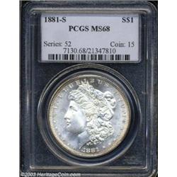 <table><tr><td><TABLE cellSpacing=0 cellPadding=0 width="100%" bgColor=#000000 border=0><TBODY> <TR><TD width="100%"><TABLE cellSpacing=1 cellPadding=3 width="100%" border=0><TBODY><TR><TD width="100%" bgColor=#79735c><FONT face=arial color=#ffffff size=3><B>Description</B> </FONT></TD></TR><TR><TD width="100%" bgColor=#ffffff><FONT face=arial size=2><B>1881-S $1 MS68 PCGS.</B></I> A truly magnificent coin with bright, radiant luster and just a slight bit of peripheral golden color on each side. An outstanding type piece that approaches pure perfection. </FONT></TD></TR></TBODY></TABLE></TD></TR></TBODY></TABLE><BR><A name=PricesRealized></A><TABLE cellSpacing=0 cellPadding=0 width="100%" bgColor=#000000 border=0><TBODY><TR><TD width="100%"><TABLE cellSpacing=1 cellPadding=3 width="100%" border=0><TBODY><TR><TD width="100%" bgColor=#79735c><A name=PR><FONT face=arial color=#ffffff size=3><B>Previous Prices from Heritage Auctions</B> </FONT></A></TD></TR><TR><TD bgColor=#f6f6ed><TABLE cellSpacing=0 cellPadding=0 width="100%" border=1><TBODY><TR><TD align=middle width="33%"><B>Date</B></TD><TD align=middle width="33%"><B>Service</B></TD><TD align=middle width="33%"><B>Price</B></TD></TR><TR bgColor=whitesmoke><TD width="33%"><B>05/03/2003</B></TD><TD width="33%">NGC</TD><TD width="33%">$2,242.50</TD></TR><TR bgColor=whitesmoke><TD width="33%"><B>04/27/2002</B></TD><TD width="33%">PCGS</TD><TD width="33%">$4,312.50</TD></TR><TR bgColor=whitesmoke><TD width="33%"><B>01/12/2002</B></TD><TD width="33%">PCGS</TD><TD width="33%">$2,415.00</TD></TR><TR bgColor=whitesmoke><TD width="33%"><B>01/05/2001</B></TD><TD width="33%">PCGS</TD><TD width="33%">$2,415.00</TD></TR><TR bgColor=whitesmoke><TD width="33%"><B>09/13/1997</B></TD><TD width="33%">PCGS</TD><TD width="33%">$2,990.00</TD></TR><TR bgColor=whitesmoke><TD width="33%"><B>09/10/1993</B></TD><TD width="33%">NGC</TD><TD width="33%">$3,520.00</TD></TR><TR bgColor=whitesmoke><TD width="33%"><B>08/09/2000</B></TD><TD width="33%">NGC</TD><TD width="33%">$1,725.00</TD></TR><TR bgColor=whitesmoke><TD width="33%"><B>09/01/1999</B></TD><TD width="33%">NGC</TD><TD width="33%">$2,415.00</TD></TR><TR bgColor=whitesmoke><TD width="33%"><B>11/01/1998</B></TD><TD width="33%">NGC</TD><TD width="33%">$2,070.00</TD></TR><TR bgColor=whitesmoke><TD width="33%"><B>03/01/1999</B></TD><TD width="33%">NGC</TD><TD width="33%">$2,128.00</TD></TR><TR bgColor=whitesmoke><TD width="33%"><B>11/01/1998</B></TD><TD width="33%">PCGS</TD><TD width="33%">$2,415.00</TD></TR><TR bgColor=whitesmoke><TD width="33%"><B>03/01/1999</B></TD><TD width="33%">PCGS</TD><TD width="33%">$2,530.00</TD></TR></TBODY></TABLE></TD></TR><TR><TD bgColor=#ffffff><FONT face=arial size=1 ?>PLEASE NOTE: All prices realized reflect the final hammer price PLUS the buyer's premium in auctions that charge a buyer's premium. Each item has a notation at the top of the listing indicating whether that lot included a buyer's premium. Example: A item that sells with a final hammer price of $100 and a 20% buyer's premium will display with a price realized of $120. All information listed is intended to be as accurate as possible, but errors are possible. Please use this guide carefully and inform us of any inaccuracies. </FONT></TD></TR></TBODY></TABLE></TD></TR></TBODY></TABLE><BR><TABLE cellSpacing=0 cellPadding=0 width="100%" bgColor=#000000 border=0><TBODY><TR><TD width="100%"><TABLE cellSpacing=1 cellPadding=3 width="100%" border=0><TBODY><TR><TD width="100%" bgColor=#79735c colSpan=6><FONT face=arial color=#ffffff size=3><B>Price Guide*</B> </FONT></TD></TR><TR bgColor=#f6f6ed><TD align=middle><B>Grade</B> </TD><TD align=middle><B>Coin World<BR>(Trends)</B> </TD><TD align=middle><B>Numismedia<BR>Retail</B> </TD><TD align=middle><B>Numismedia<BR>Wholesale</B> </TD><TD align=middle><B>Coin<BR>Universe</B> </TD><TD align=middle><B>Heritage<BR>Value Index</B> </TD></TR><TR bgColor=#ffffff><TD align=middle>67</TD><TD align=right>---</TD><TD align=right>$680.00</TD><TD align=right>$540.00</TD><TD align=right>$1,050.00</TD><TD align=right>$643.17</TD></TR><TR style="FONT-WEIGHT: bold" bgColor=#cccfdd><TD align=middle>68</TD><TD align=right>---</TD><TD align=right>---</TD><TD align=right>$2,250.00</TD><TD align=right>---</TD><TD align=right>---</TD></TR><TR bgColor=#ffffff><TD align=middle>69</TD><TD align=right>---</TD><TD align=right>---</TD><TD align=right>$44,000.00</TD><TD align=right>---</TD><TD align=right>---</TD></TR><TR bgColor=#ffffff><TD colSpan=6><FONT size=1>*All information listed is intended to be as accurate as possible, but errors are possible. No item may be returned or refused based on this information which is provided as a service to our customers. You should contact each pricing source directly to determine the accuracy of this information. </FONT></TD></TR></TBODY></TABLE></TD></TR></TBODY></TABLE><BR><TABLE cellSpacing=0 cellPadding=0 width="100%" bgColor=#000000 border=0><TBODY><TR><TD width="100%"><TABLE cellSpacing=1 cellPadding=3 width="100%" border=0><TBODY><TR><TD width="100%" bgColor=#79735c><FONT face=arial color=#ffffff size=3><B>Population Guide</B> </FONT></TD></TR><TR bgColor=#ffffff><TD align=middle><!-- Begin Output of Population Grid--><TABLE cellSpacing=0 cellPadding=0 width="100%" border=0><TBODY><TR><TD vAlign=center><TABLE cellSpacing=0 width="100%" border=1 cellsadding="3"><TBODY><TR><TD vAlign=center><TABLE cellSpacing=0 cellPadding=3 width="100%" border=1><TBODY><TR><TD vAlign=center align=middle bgColor=#f0f1e8 colSpan=2 <CENTER><FONT face=Arial size=2><B>PCGS Pop </B></FONT><CENTER></CENTER></TD><TD vAlign=center align=middle bgColor=#f0f1e8 colSpan=2><CENTER><FONT face=Arial size=2><B>NGC Pop</B></CENTER></FONT></TD></TR><TR><TD vAlign=center><FONT face=Arial size=2>(68)</FONT> </TD><TD vAlign=center align=right><FONT face=Arial size=2>75</FONT> </TD><TD vAlign=center><FONT face=Arial size=2>(68)</FONT> </TD><TD vAlign=center align=right><FONT face=Arial size=2>50</