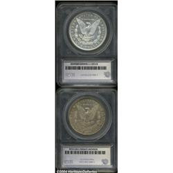 <table><tbody><tr><td><table> <TR><TD width="100%"><TABLE cellSpacing=1 cellPadding=3 width="100%" border=0><TBODY><TR><TD width="100%" bgColor=#79735c><FONT face=arial color=#ffffff size=3><B>Description</B> </FONT></TD></TR><TR><TD width="100%" bgColor=#ffffff><FONT face=arial size=2><B>1881-S $1 Morgan Dollar MS64 Deep Mirror Prooflike SEGS (MS62),</B></I> well struck and flashy, faint slide marks on the cheek, splendid golden-brown and concord-grape patina on the reverse; and an <B>1893/3 Morgan Dollar AU55 Prooflike SEGS (AU50 Cleaned),</B></I> VAM 2, the top of the 3 is repunched as is often encountered on this issue, a sharply detailed and unabraded better date Dollar that has been previously dipped. (2 coins) </FONT></TD></TR></TBODY></TABLE></TD></TR></TBODY></TABLE><BR><A name=PricesRealized></A><TABLE cellSpacing=0 cellPadding=0 width="100%" bgColor=#000000 border=0><TBODY><TR><TD width="100%"><TABLE cellSpacing=1 cellPadding=3 width="100%" border=0><TBODY><TR><TD width="100%" bgColor=#79735c><A name=PR><FONT face=arial color=#ffffff size=3><B>Previous Prices from Heritage Auctions</B> </FONT></A></TD></TR><TR><TD bgColor=#f6f6ed><TABLE cellSpacing=0 cellPadding=0 width="100%" border=1><TBODY><TR><TD align=middle width="33%"><B>Date</B></TD><TD align=middle width="33%"><B>Service</B></TD><TD align=middle width="33%"><B>Price</B></TD></TR><TR bgColor=whitesmoke><TD width="33%"><B>11/11/2003</B></TD><TD width="33%">PCGS</TD><TD width="33%">$149.50</TD></TR><TR bgColor=whitesmoke><TD width="33%"><B>12/24/2002</B></TD><TD width="33%">NGC</TD><TD width="33%">$101.20</TD></TR><TR bgColor=whitesmoke><TD width="33%"><B>10/02/2001</B></TD><TD width="33%">ANACS</TD><TD width="33%">$130.00</TD></TR><TR bgColor=whitesmoke><TD width="33%"><B>09/26/2000</B></TD><TD width="33%">PCGS</TD><TD width="33%">$66.00</TD></TR><TR bgColor=whitesmoke><TD width="33%"><B>01/07/2004</B></TD><TD width="33%">NGC</TD><TD width="33%">$212.75</TD></TR><TR bgColor=whitesmoke><TD width="33%"><B>06/02/2001</B></TD><TD width="33%">ANACS</TD><TD width="33%">$95.45</TD></TR><TR bgColor=whitesmoke><TD width="33%"><B>06/07/2000</B></TD><TD width="33%">NGC</TD><TD width="33%">$115.00</TD></TR></TBODY></TABLE></TD></TR><TR><TD bgColor=#ffffff><FONT face=arial size=1 ?>PLEASE NOTE: All prices realized reflect the final hammer price PLUS the buyer's premium in auctions that charge a buyer's premium. Each item has a notation at the top of the listing indicating whether that lot included a buyer's premium. Example: A item that sells with a final hammer price of $100 and a 20% buyer's premium will display with a price realized of $120. All information listed is intended to be as accurate as possible, but errors are possible. Please use this guide carefully and inform us of any inaccuracies. </FONT></TD></TR></TBODY></TABLE></TD></TR></TBODY></TABLE><BR><TABLE cellSpacing=0 cellPadding=0 width="100%" bgColor=#000000 border=0><TBODY><TR><TD width="100%"><TABLE cellSpacing=1 cellPadding=3 width="100%" border=0><TBODY><TR><TD width="100%" bgColor=#79735c colSpan=6><FONT face=arial color=#ffffff size=3><B>Price Guide*</B> </FONT></TD></TR><TR bgColor=#f6f6ed><TD align=middle><B>Grade</B> </TD><TD align=middle><B>Coin World<BR>(Trends)</B> </TD><TD align=middle><B>Numismedia<BR>Retail</B> </TD><TD align=middle><B>Numismedia<BR>Wholesale</B> </TD><TD align=middle><B>Coin<BR>Universe</B> </TD><TD align=middle><B>Heritage<BR>Value Index</B> </TD></TR><TR><TD colSpan=6>No Pricing Data Available</TD></TR><TR bgColor=#ffffff><TD colSpan=6><FONT size=1>*All information listed is intended to be as accurate as possible, but errors are possible. No item may be returned or refused based on this information which is provided as a service to our customers. You should contact each pricing source directly to determine the accuracy of this information. </FONT></TD></TR></TBODY></TABLE></TD></TR></TBODY></TABLE><BR><TABLE cellSpacing=0 cellPadding=0 width="100%" bgColor=#000000 border=0><TBODY><TR><TD width="100%"><TABLE cellSpacing=1 cellPadding=3 width="100%" border=0><TBODY><TR><TD width="100%" bgColor=#79735c><FONT face=arial color=#ffffff size=3><B>Population Guide</B> </FONT></TD></TR><TR bgColor=#ffffff><TD align=middle><!-- Begin Output of Population Grid--><TABLE cellSpacing=0 cellPadding=0 width="100%" border=0><TBODY><TR><TD vAlign=center><TABLE cellSpacing=0 width="100%" border=1 cellsadding="3"><TBODY><TR><TD vAlign=center><TABLE cellSpacing=0 cellPadding=3 width="100%" border=1><TBODY><TR><TD vAlign=center align=middle bgColor=#f0f1e8 colSpan=2 <CENTER><FONT face=Arial size=2><B>PCGS Pop </B></FONT><CENTER></CENTER></TD><TD vAlign=center align=middle bgColor=#f0f1e8 colSpan=2><CENTER><FONT face=Arial size=2><B>NGC Pop</B></CENTER></FONT></TD></TR><TR><TD vAlign=center><FONT face=Arial size=2>(64)</FONT> </TD><TD vAlign=center align=right><FONT face=Arial size=2>321</FONT> </TD><TD vAlign=center><FONT face=Arial size=2>(64)</FONT> </TD><TD vAlign=center align=right><FONT face=Arial size=2>504</FONT> </TD></TR><TR><TD vAlign=center><FONT face=Arial size=2>(>64)</FONT> </TD><TD vAlign=center align=right><FONT face=Arial size=2>274</FONT> </TD><TD vAlign=center><FONT face=Arial size=2>(>64)</FONT> </TD><TD vAlign=center align=right><FONT face=Arial size=2>383</FONT> </TD></TR></TBODY></TABLE></TD></TR></TBODY></TABLE></TD></TR></TBODY></TABLE><!-- End Output of Population Grid--></TD></TR></TBODY></TABLE></TD></TR></TBODY></TABLE><BR><TABLE cellSpacing=0 cellPadding=0 width="100%" bgColor=#000000 border=0><TBODY><TR> 2 coins<font color='#000000'><span style='background-color: #FFFFFF'><td bgcolor='#FFFFFE'> Important notice: Heritage usually auctions material at the rate of 200-250 lots per hour. On some occasions eBay Live bid software or the Internet may not be able to keep up with the pace of the auction. We recommend placing a realistic absentee bid now as insurance to avoid disappointment. Occasionally the auctioneer may eliminate 