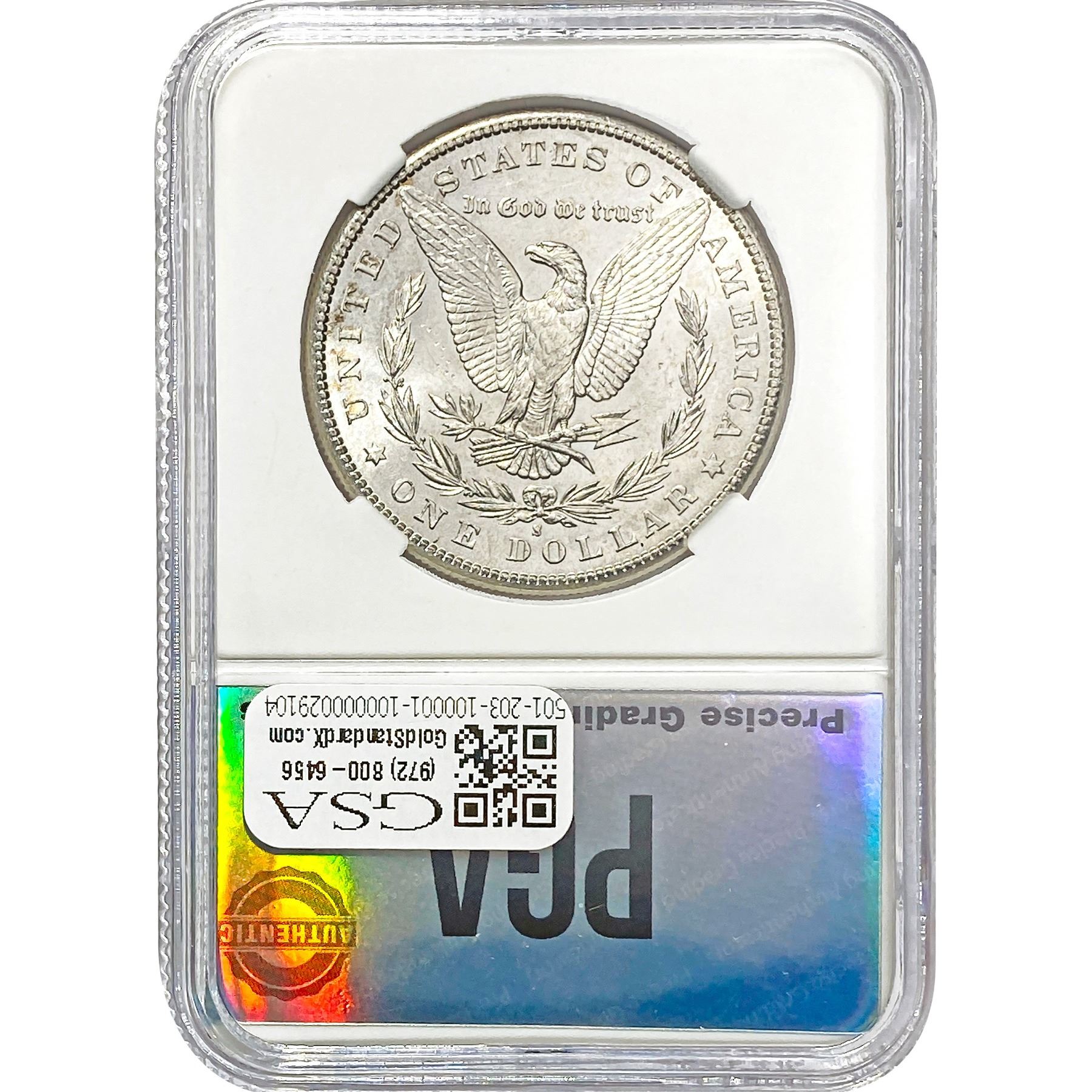 e. Coins sold referencing a third-party grading service are sold “AS IS” without any express or implied warranty, except for a guarantee by GSA that they are genuine. Removal or alteration of the holder, voids all of Bidder’s claims concerning that Product. Certain warranties may be available from the grading services and Bidders are referred to them for further details: Numismatic Guaranty Corporation (NGC), PO Box 4776, Sarasota, FL 34230, www.ngccoin.com/services/writtenguarantee.asp; Professional Coin Grading Services (PCGS), PO Box 9458, Newport Beach, CA 92658, www.pcgs.com/guarantee.html; ANACS, 6555 S. Kenton St., Ste. 303, Englewood, CO 80111; and Independent Coin Grading Co. (ICG), 7901 East Bellview, Ave., Suite 50, Englewood, CO 80111.