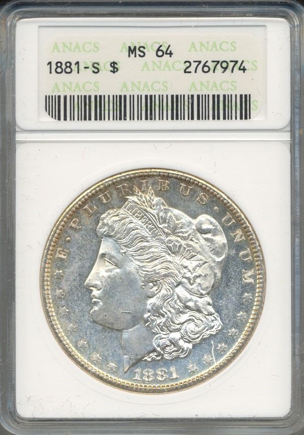 One 1881-S $1 Morgan Silver Dollar Coin ANACS MS64.