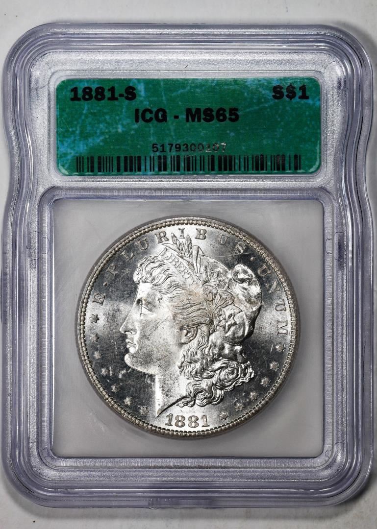 One 1881-S $1 Morgan Silver Dollar Coin ICG MS65. ICG Certified.