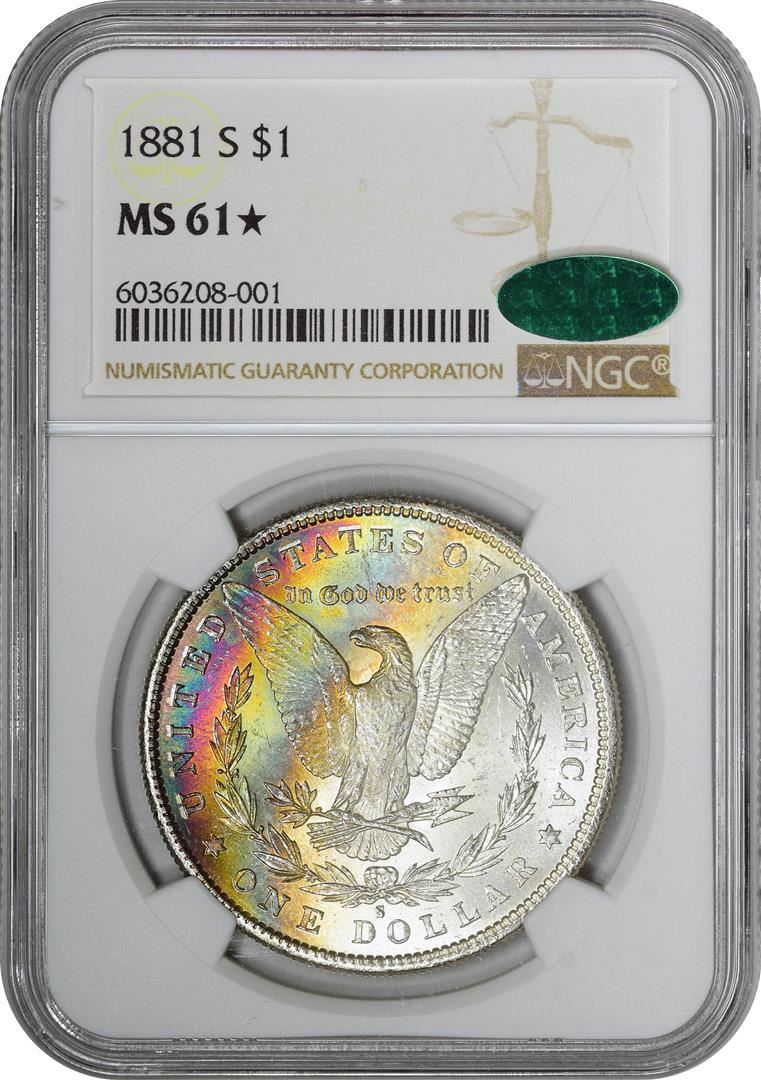 1881-S $1 Morgan Silver Dollar Coin NGC MS61* Star CAC Amazing Toning
