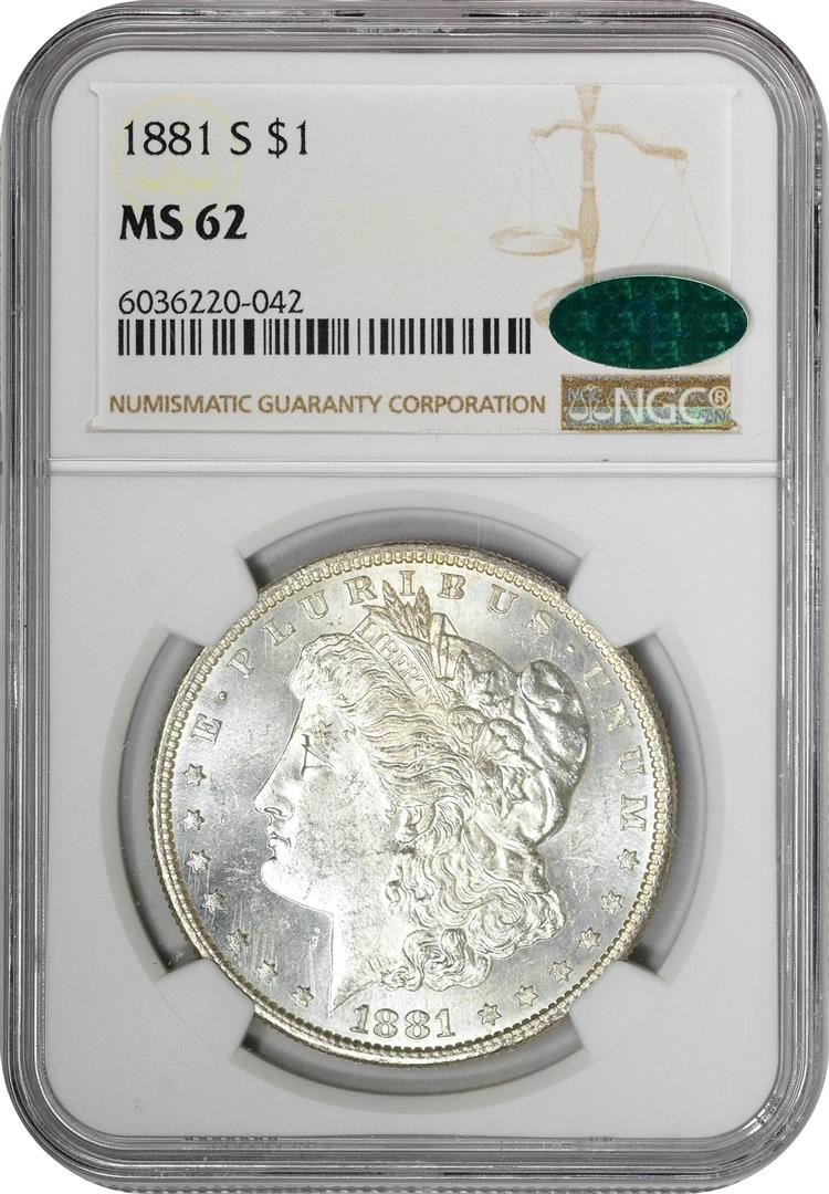 1881-S $1 Morgan Silver Dollar Coin NGC MS62 CAC Amazing Toning
