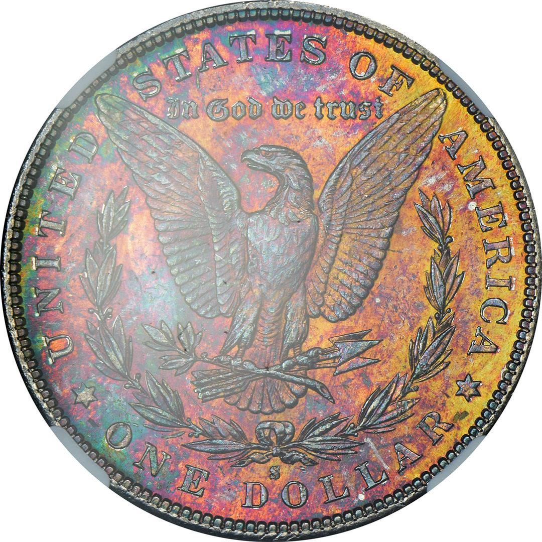 One 1881-S $1 Morgan Silver Dollar Coin NGC MS62 CAC Amazing Toning. NGC Certified.