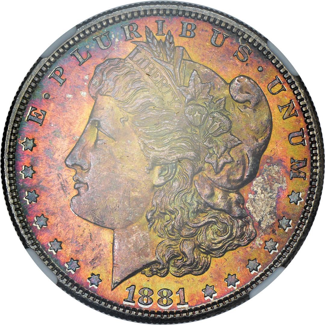 One 1881-S $1 Morgan Silver Dollar Coin NGC MS62 CAC Amazing Toning. NGC Certified.