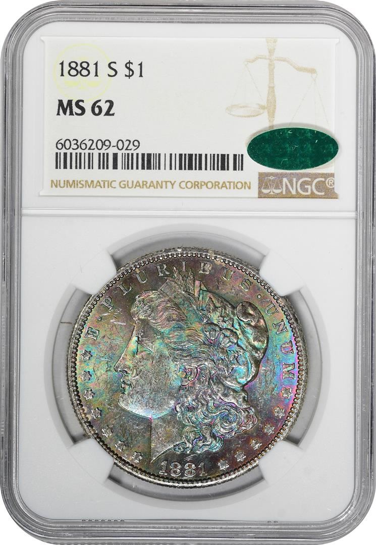 1881-S $1 Morgan Silver Dollar Coin NGC MS62 CAC Amazing Toning