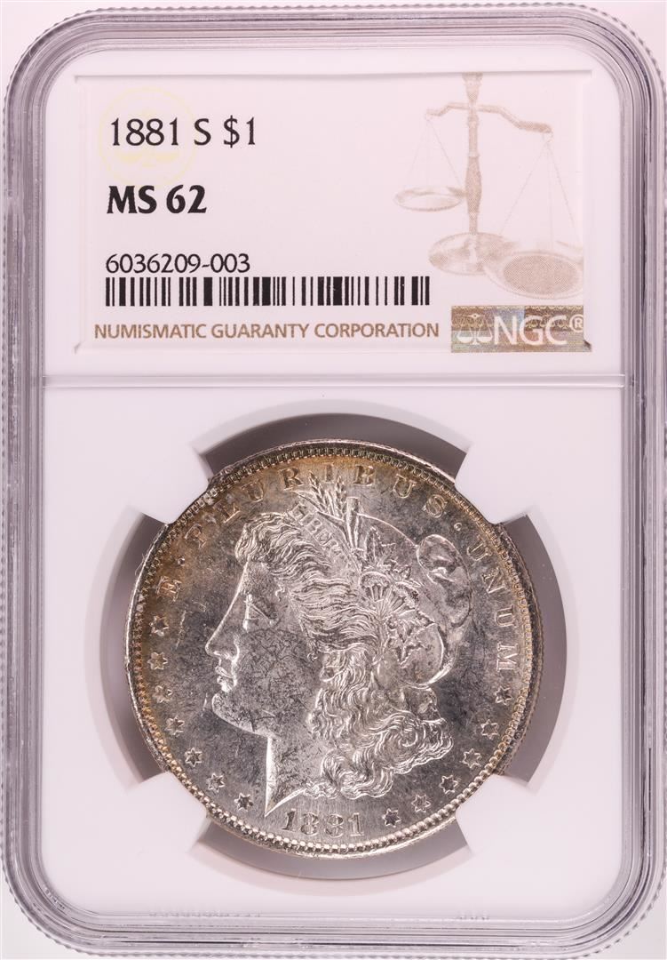 One 1881-S $1 Morgan Silver Dollar Coin NGC MS62 Great Toning. NGC Certified.