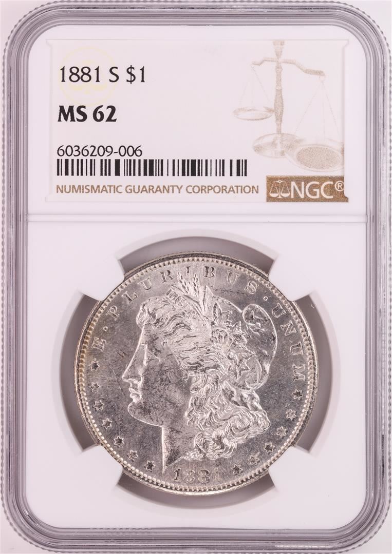 One 1881-S $1 Morgan Silver Dollar Coin NGC MS62 Nice Toning. NGC Certified.