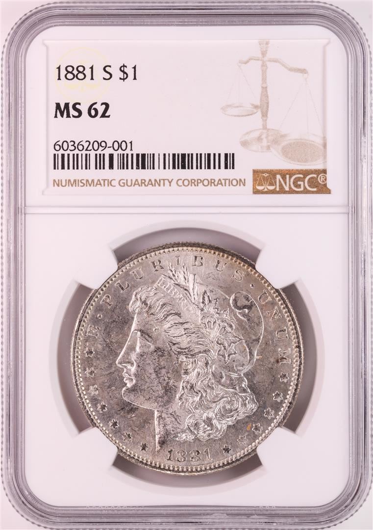 One 1881-S $1 Morgan Silver Dollar Coin NGC MS62 Nice Toning. NGC Certified.