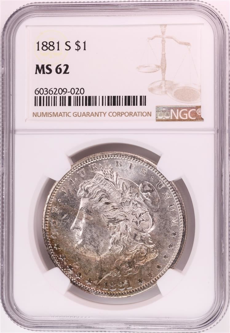 One 1881-S $1 Morgan Silver Dollar Coin NGC MS62 Nice Toning. NGC Certified.