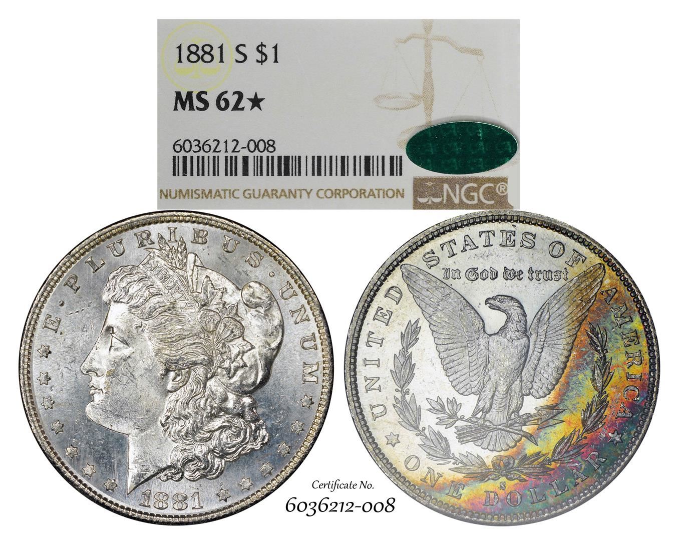1881-S $1 Morgan Silver Dollar Coin NGC MS62* Star CAC Amazing Toning