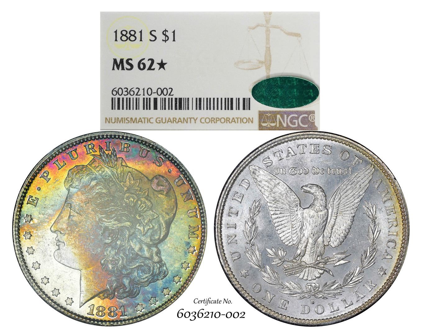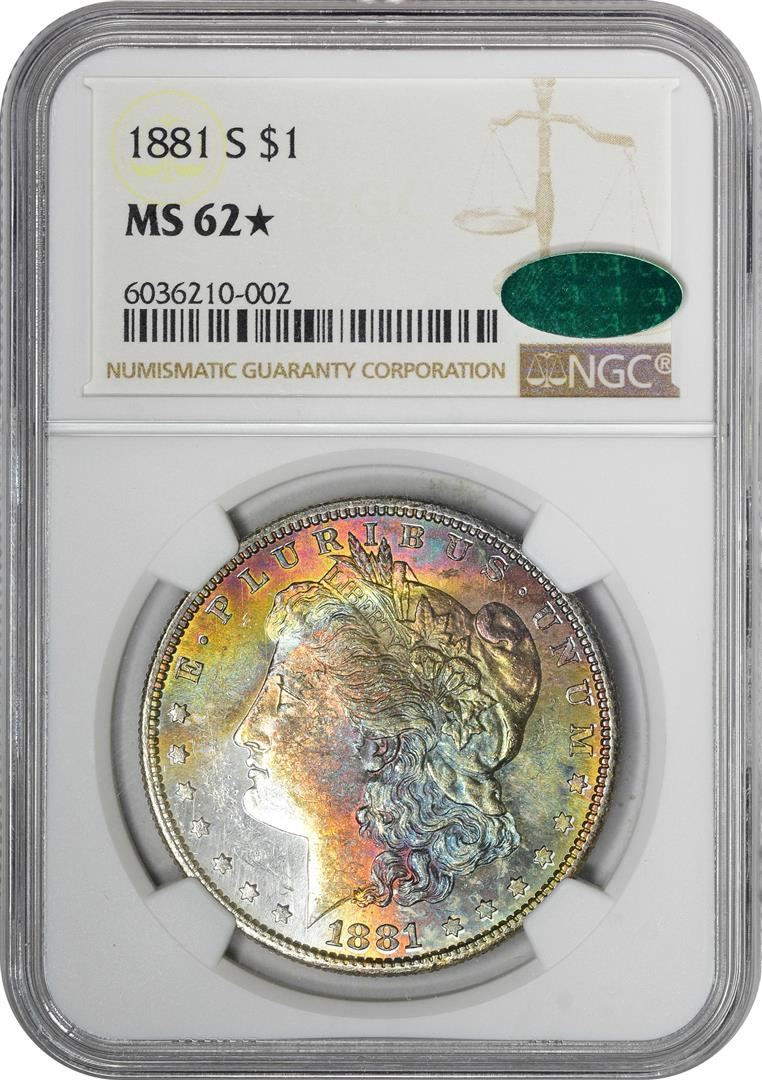 1881-S $1 Morgan Silver Dollar Coin NGC MS62* Star CAC Amazing Toning