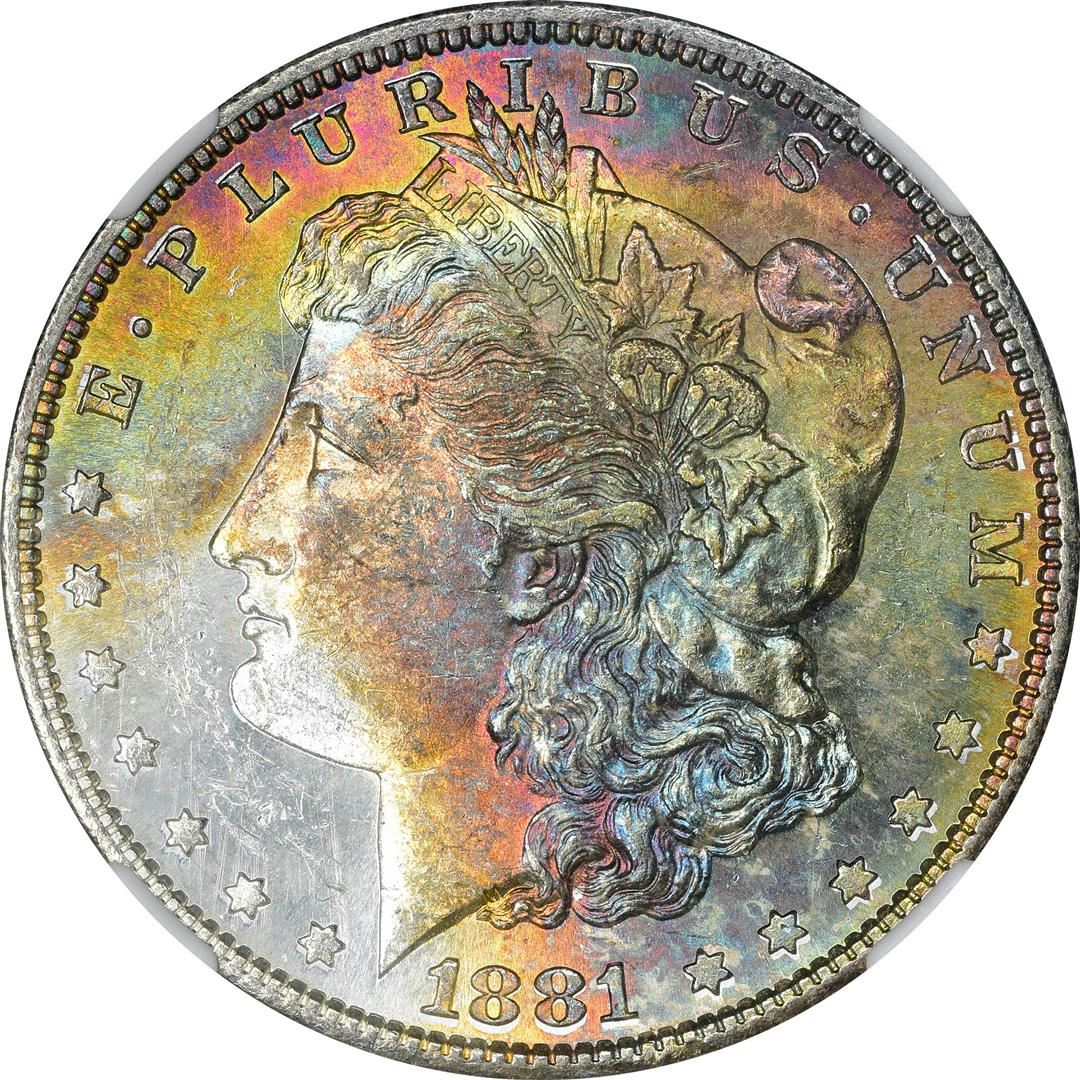 One 1881-S $1 Morgan Silver Dollar Coin NGC MS62* Star CAC Amazing Toning. NGC Certified.