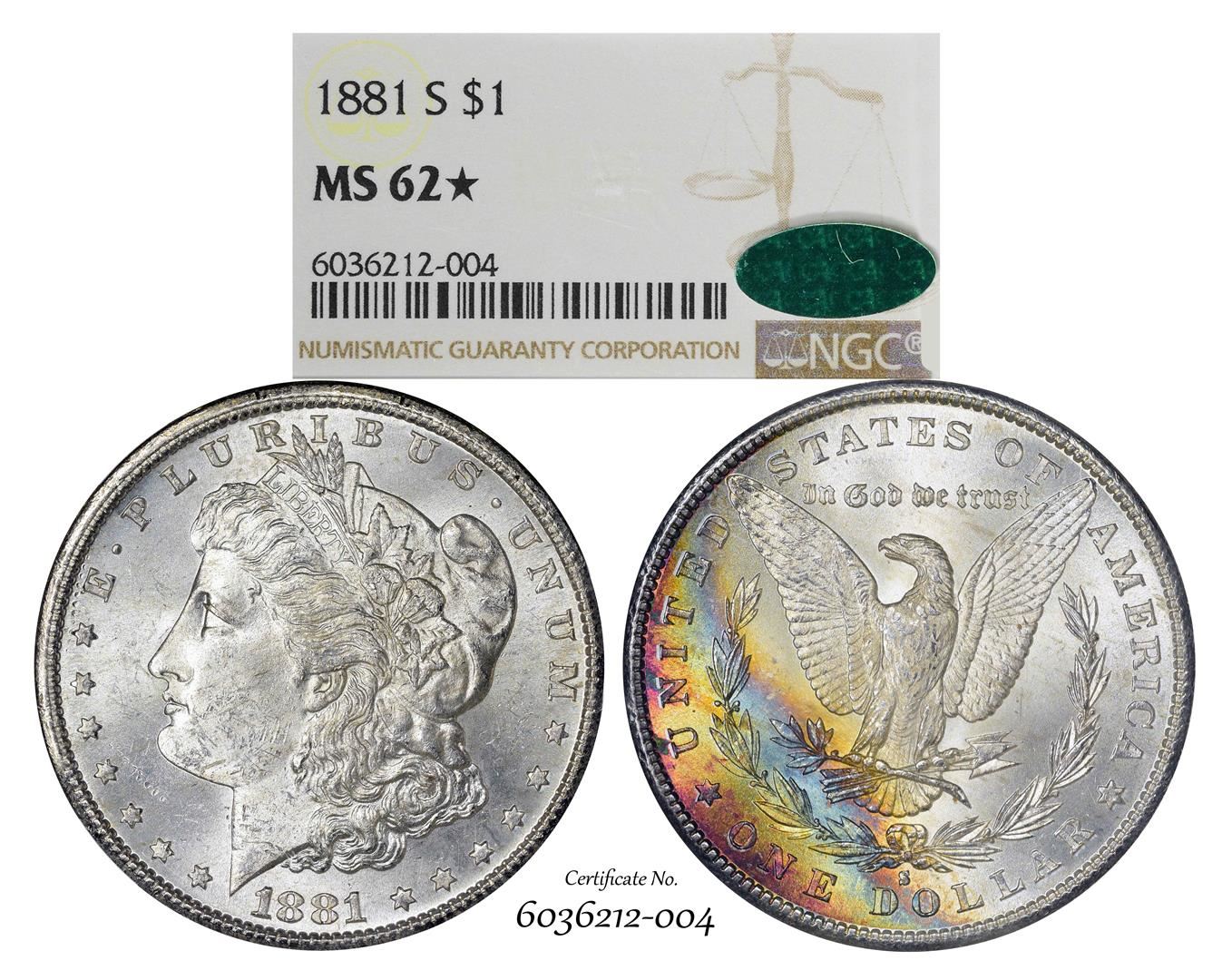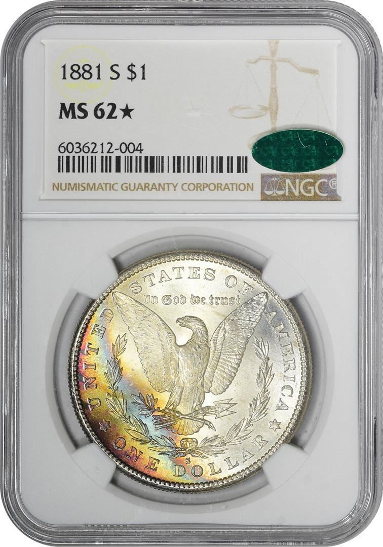 1881-S $1 Morgan Silver Dollar Coin NGC MS62* Star CAC Amazing Toning