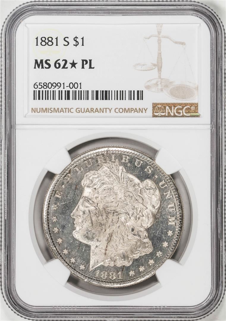One 1881-S $1 Morgan Silver Dollar Coin NGC MS62* Star PL. NGC Certified.