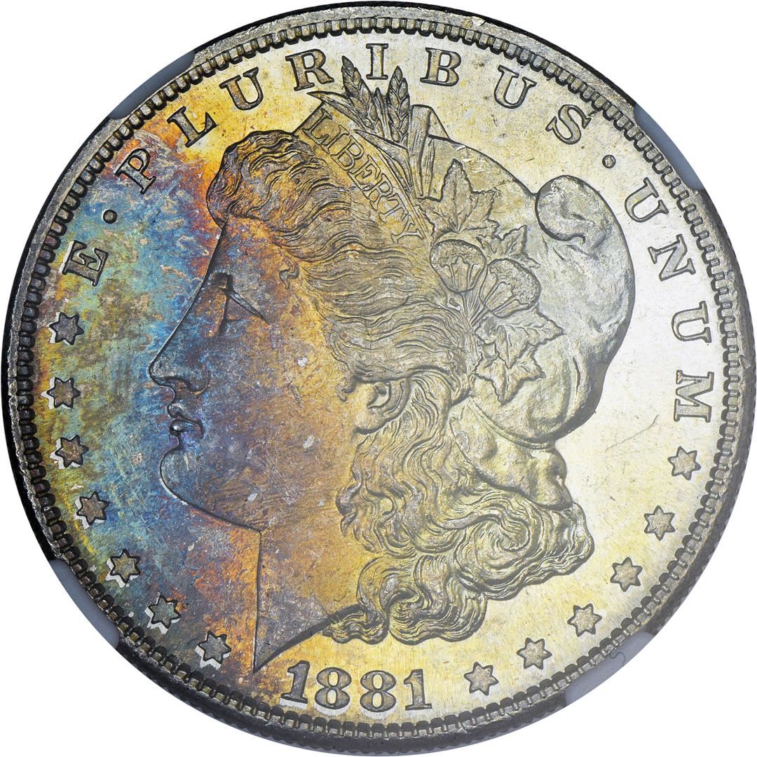 1881-S $1 Morgan Silver Dollar Coin NGC MS63 CAC Amazing Toning