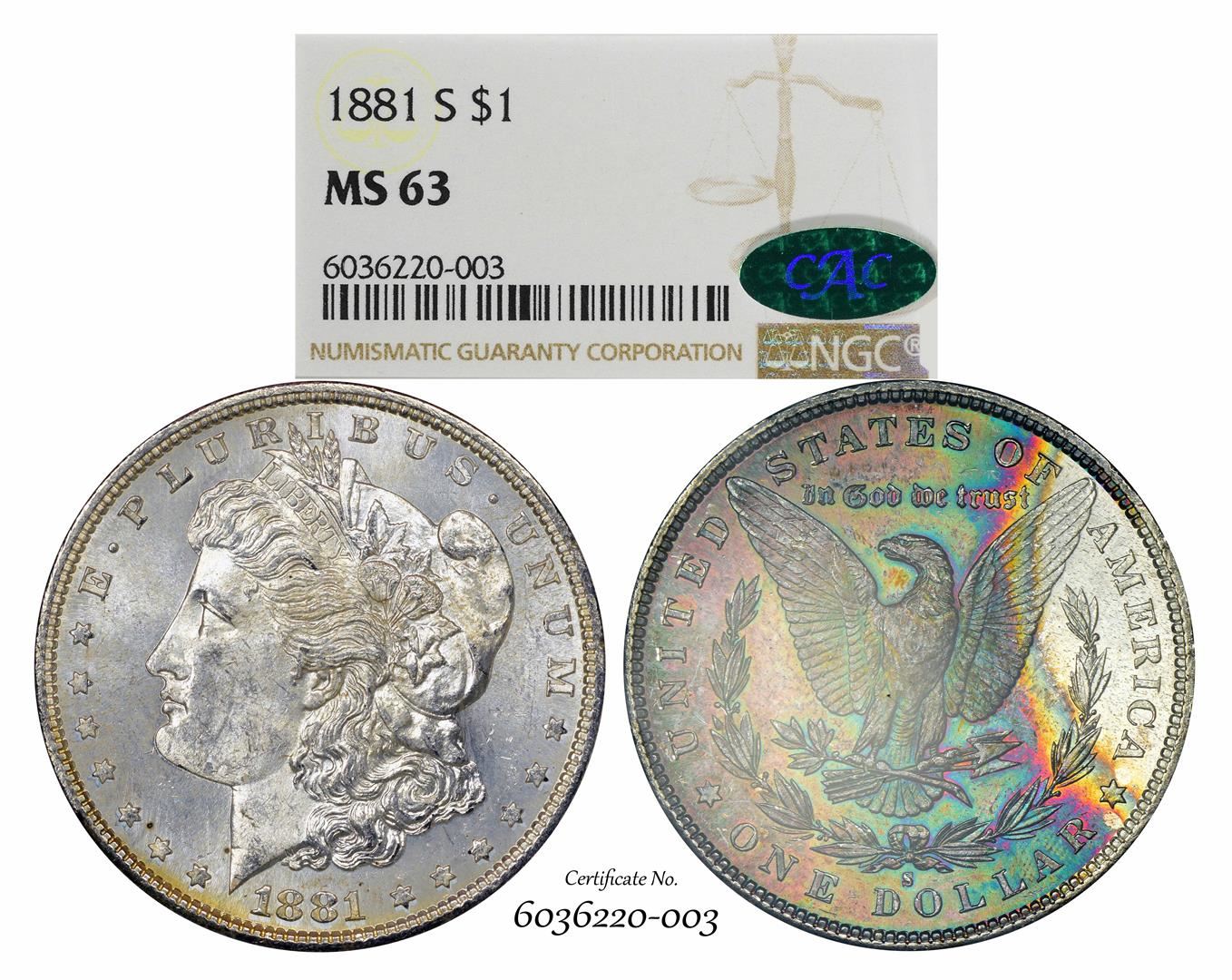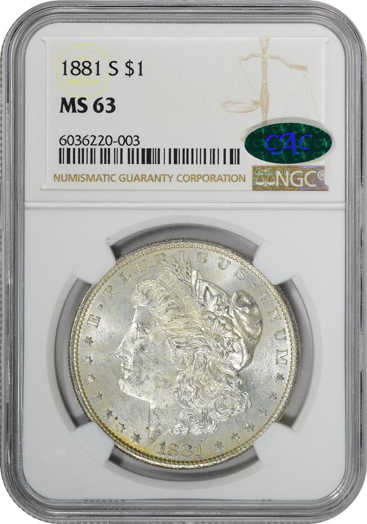 1881-S $1 Morgan Silver Dollar Coin NGC MS63 CAC Amazing Toning
