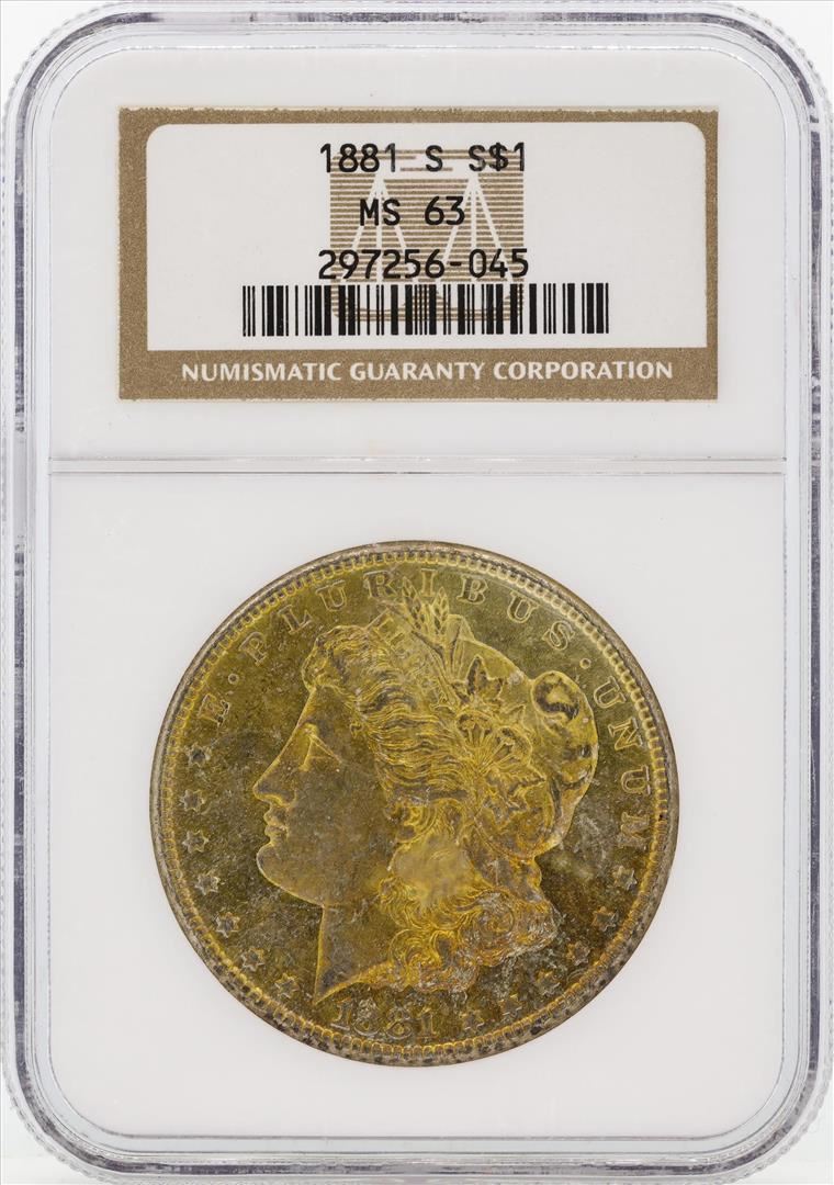 One 1881-S $1 Morgan Silver Dollar Coin NGC MS63 Great Toning. NGC Certified.
