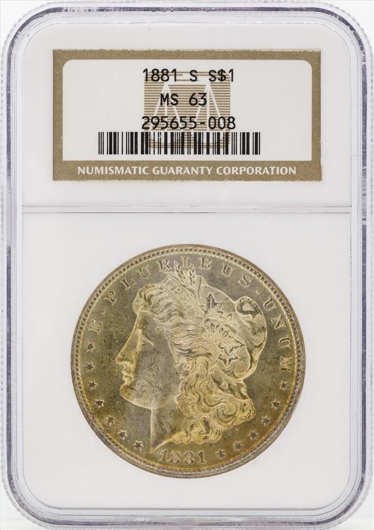 One 1881-S $1 Morgan Silver Dollar Coin NGC MS63 Great Toning. NGC Certified.