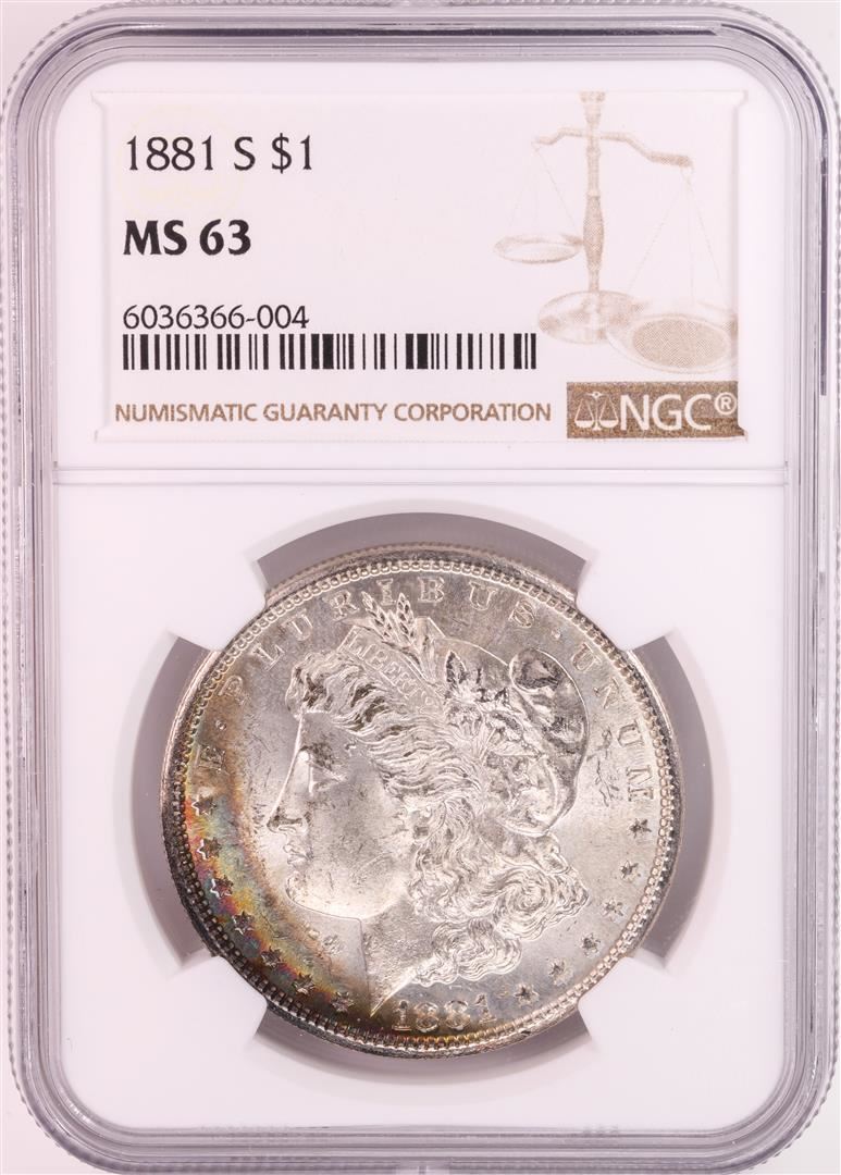 One 1881-S $1 Morgan Silver Dollar Coin NGC MS63 Great Toning. NGC Certified.