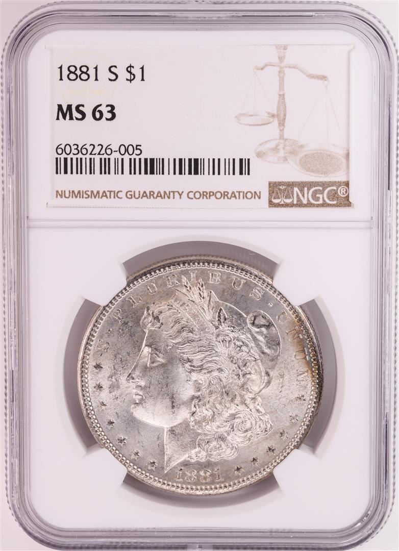 One 1881-S $1 Morgan Silver Dollar Coin NGC MS63 Great Toning. NGC Certified.