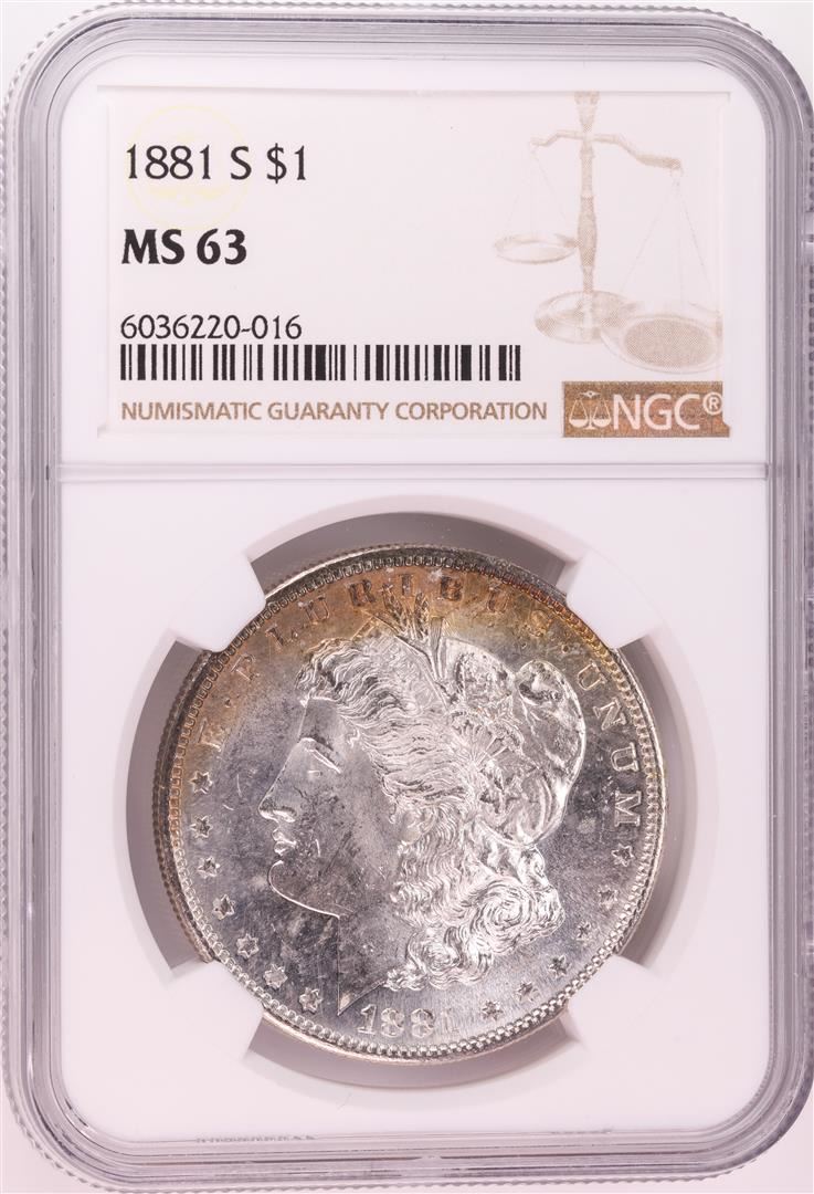 One 1881-S $1 Morgan Silver Dollar Coin NGC MS63 Great Toning. NGC Certified.