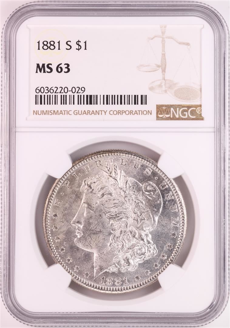 One 1881-S $1 Morgan Silver Dollar Coin NGC MS63 Great Toning. NGC Certified.