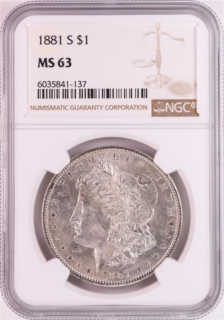 One 1881-S $1 Morgan Silver Dollar Coin NGC MS63 Nice Toning. NGC Certified.