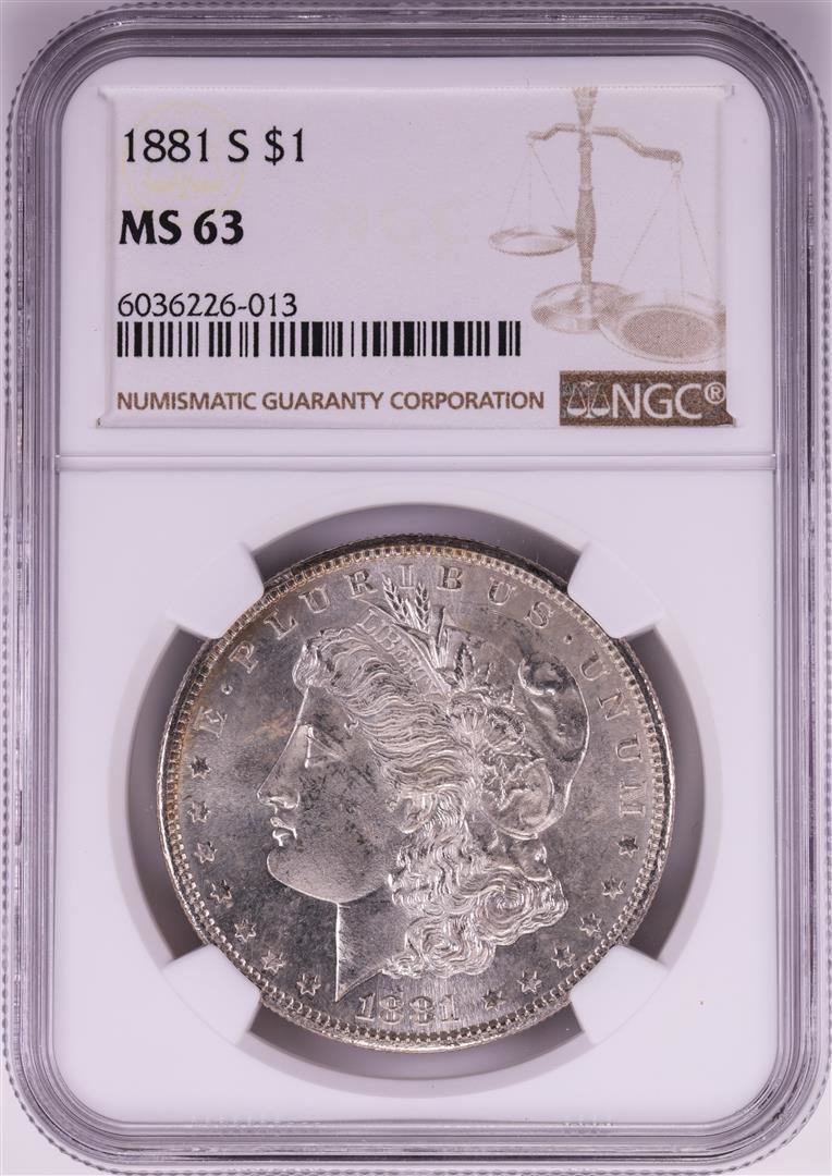 One 1881-S $1 Morgan Silver Dollar Coin NGC MS63 Nice Toning. NGC Certified.