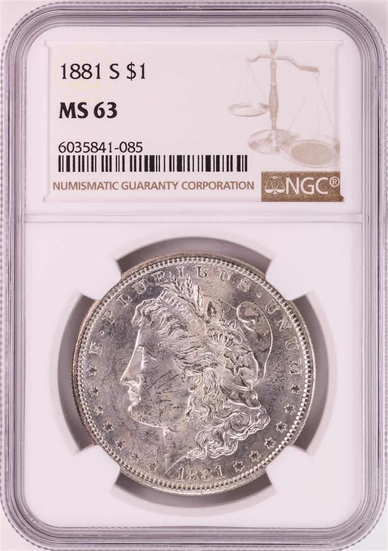 One 1881-S $1 Morgan Silver Dollar Coin NGC MS63 Nice Toning. NGC Certified.