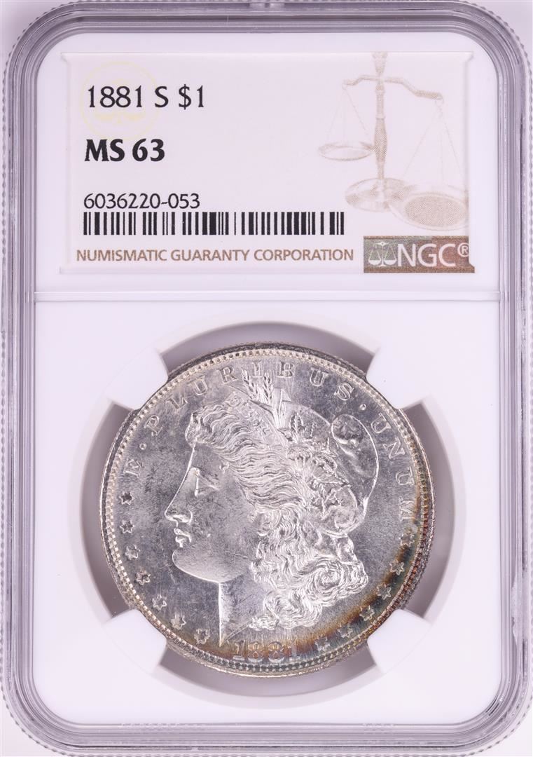 One 1881-S $1 Morgan Silver Dollar Coin NGC MS63 Nice Toning. NGC Certified.