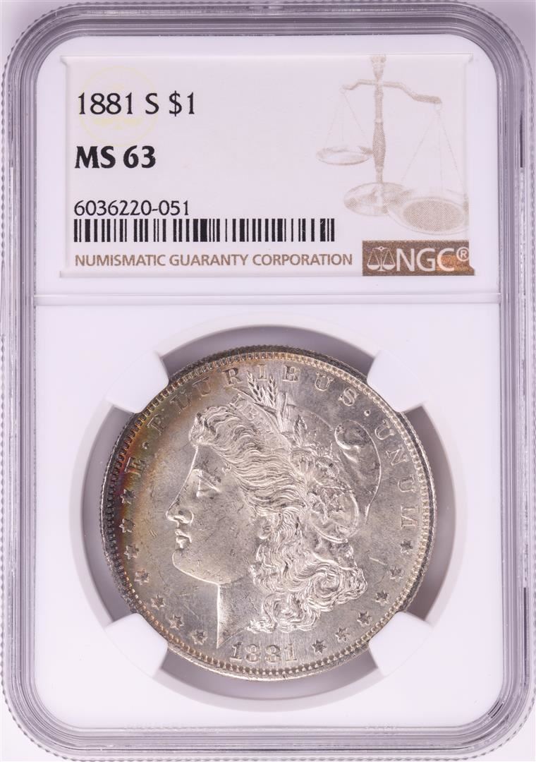 One 1881-S $1 Morgan Silver Dollar Coin NGC MS63 Nice Toning. NGC Certified.