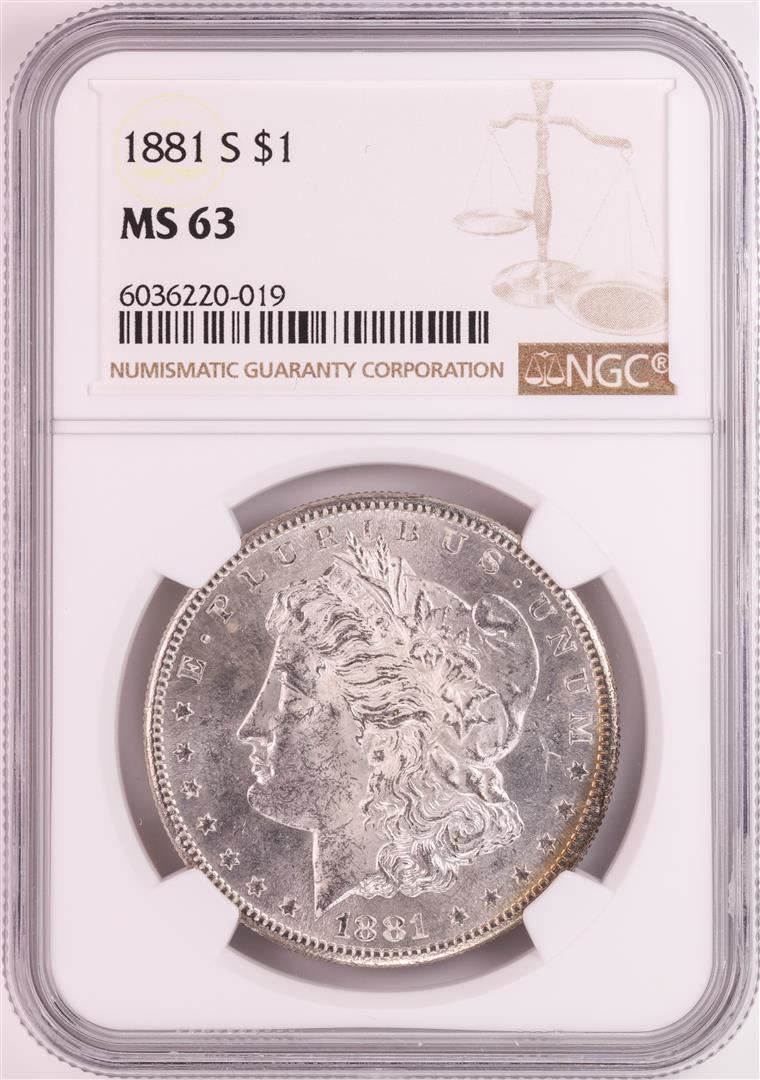 One 1881-S $1 Morgan Silver Dollar Coin NGC MS63 Nice Toning. NGC Certified.