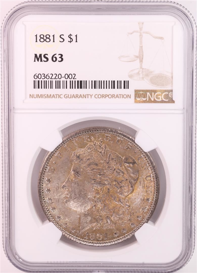 One 1881-S $1 Morgan Silver Dollar Coin NGC MS63 Nice Toning. NGC Certified.